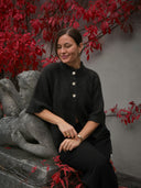 J By J 6866 Wide Stretch Pants Coated Black 50% rabat Bestseller