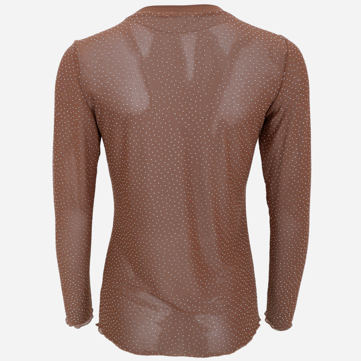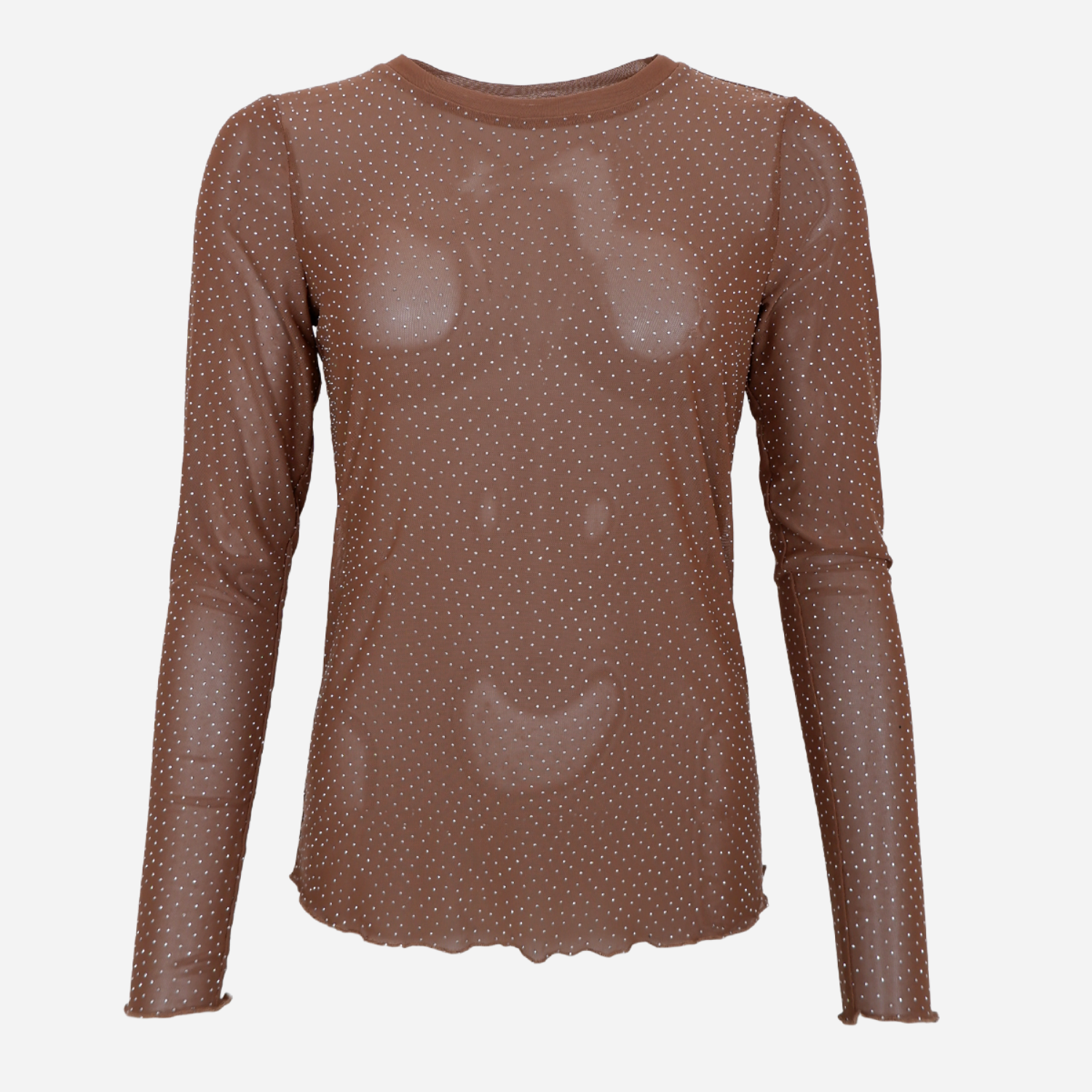 Mesh bluse med simili sten fra Black Colour i flot nougat farve.