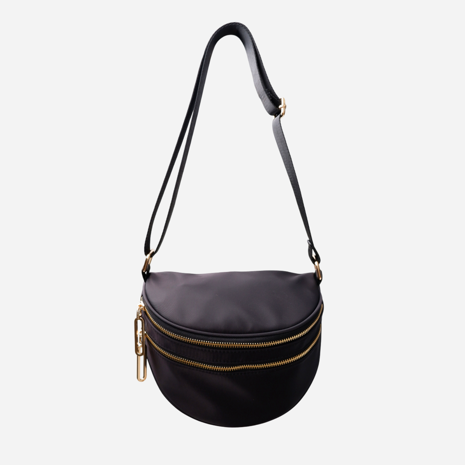 Sort crossover taske fra Black Colour med guld lynlåse.