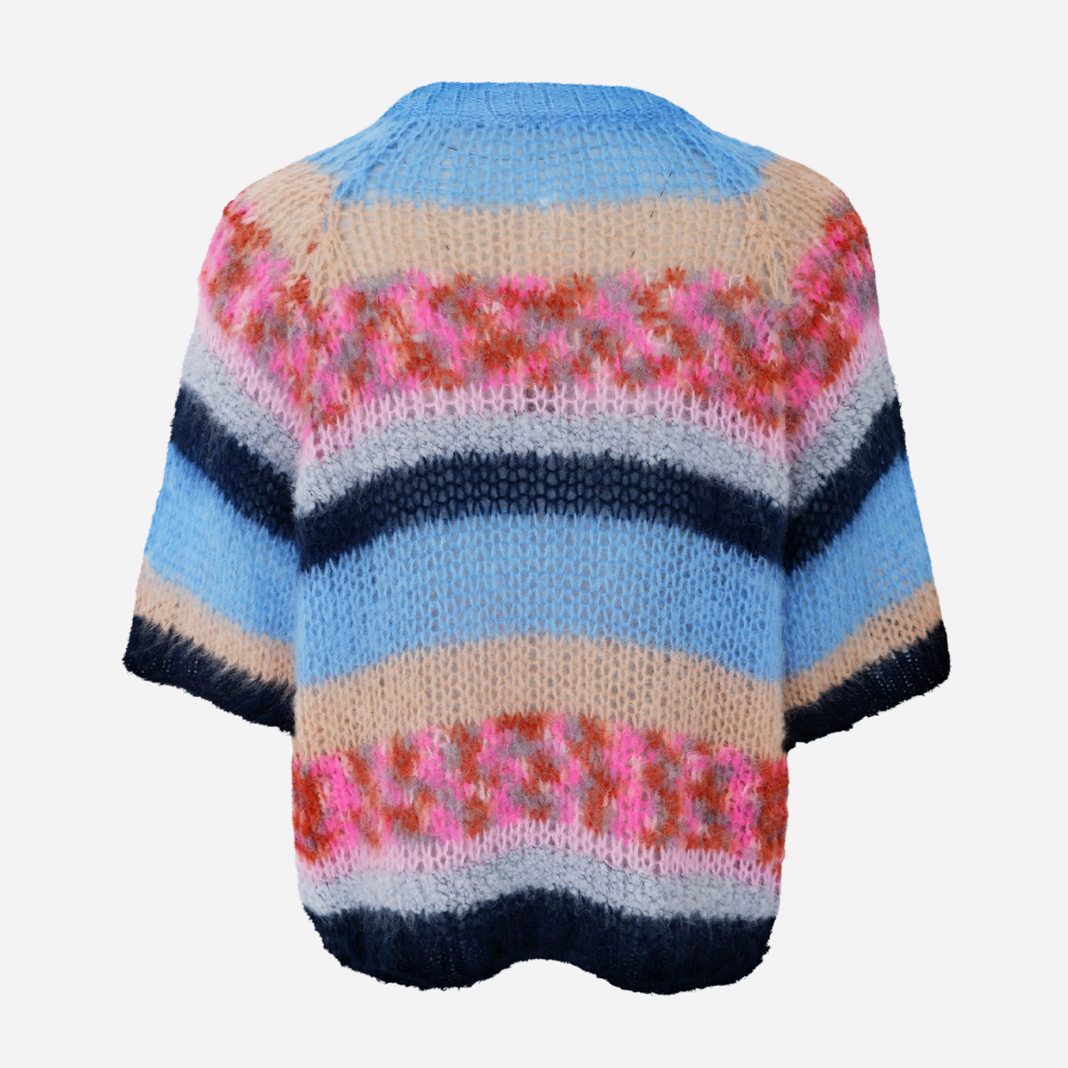 Vamset og blød strik fra Black Colour i stribet blåt mønster.