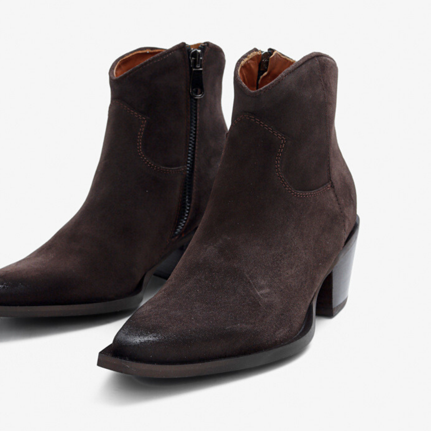 Brune ruskinds støvler fra Bukela med plateau hæl.