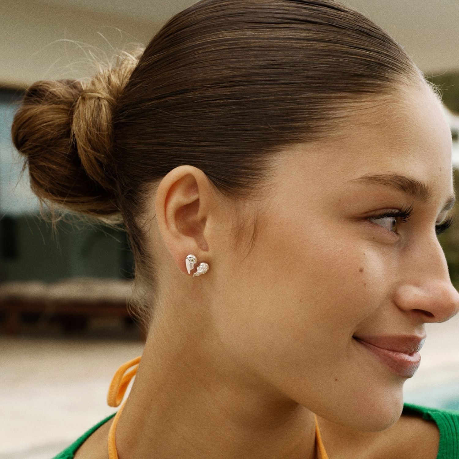 Todelt hjerte ørestik fra Camille Brinch i sølv.