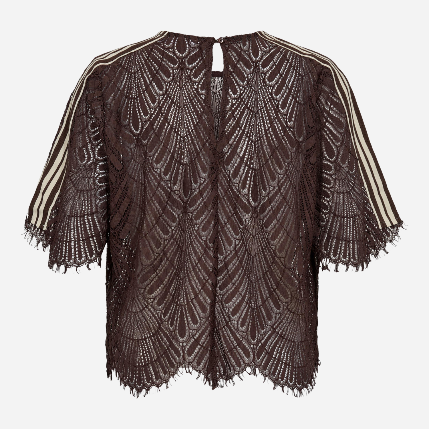 Kortærmet brun lace bluse fra Co Couture med striber.