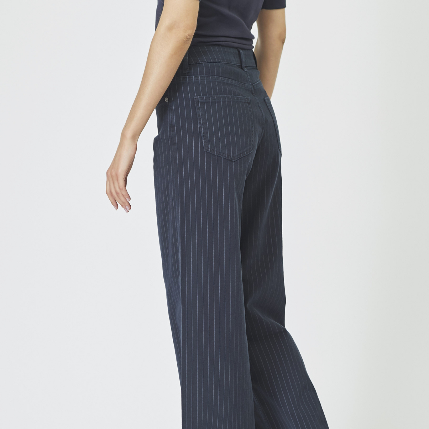 Løse stribede stretch jeans fra Co Couture i helt mørkeblå med sort strejf.