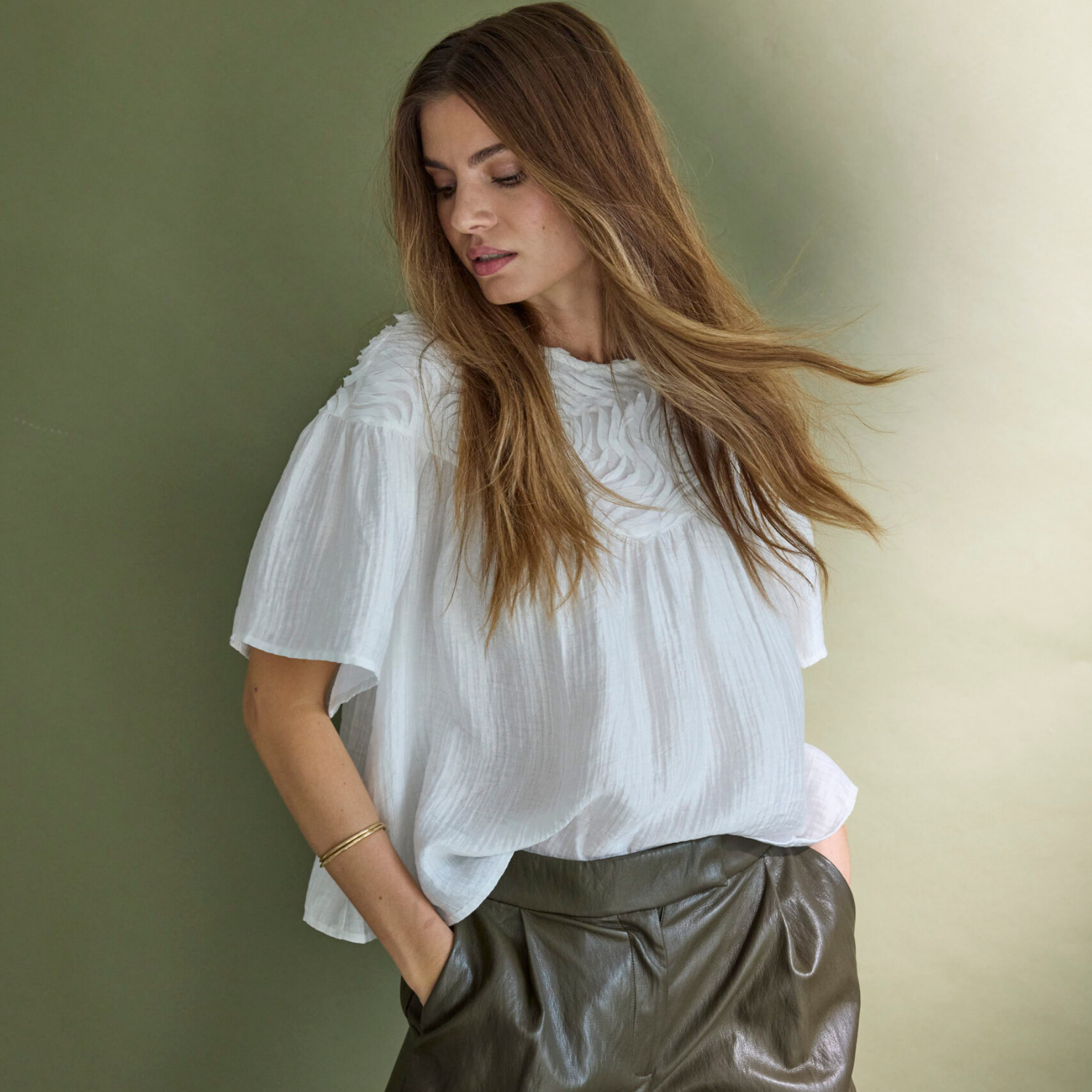 Elegant hvid bluse fra Co Couture med korte ærmer.