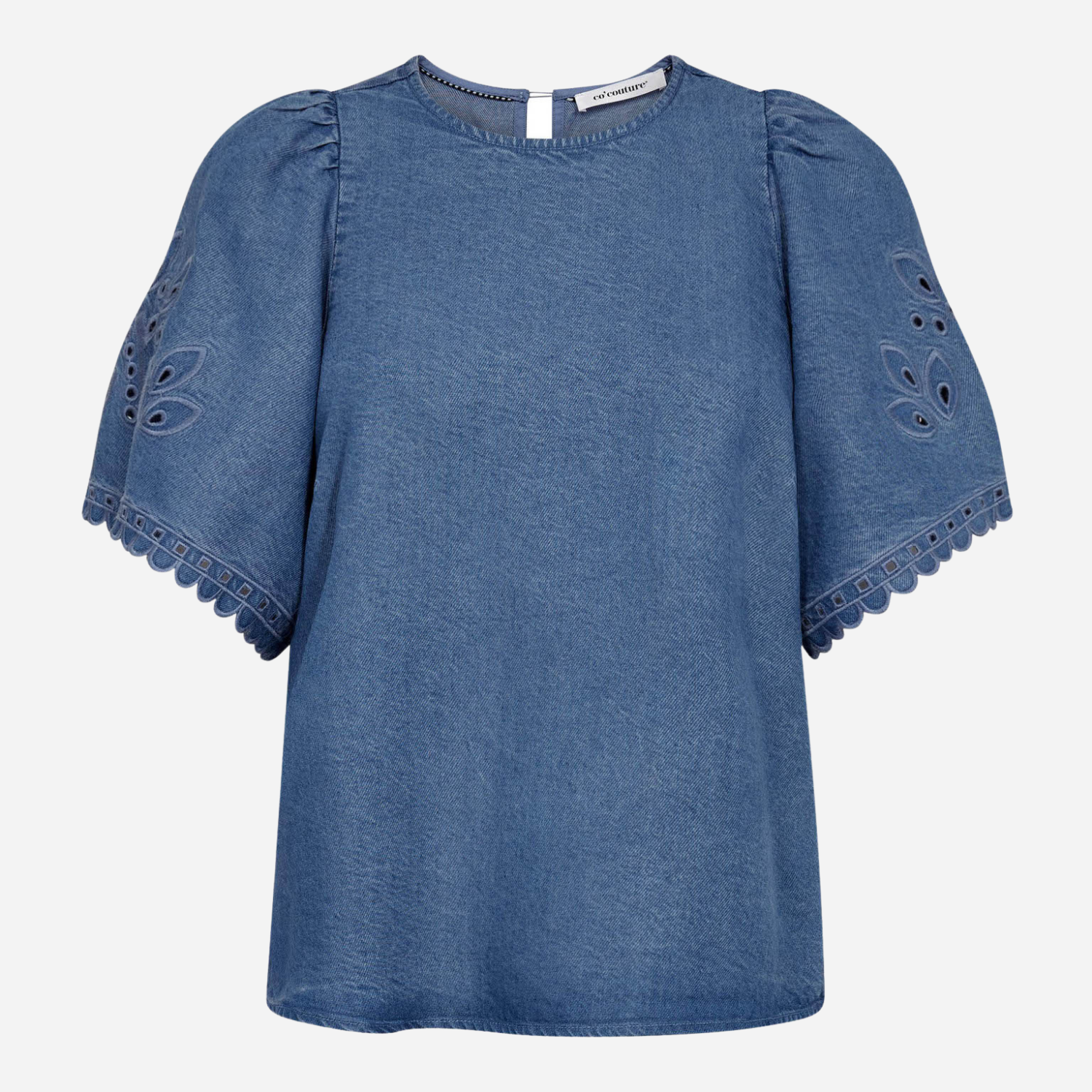 Blå denim bluse fra Co Couture med korte ærmer.