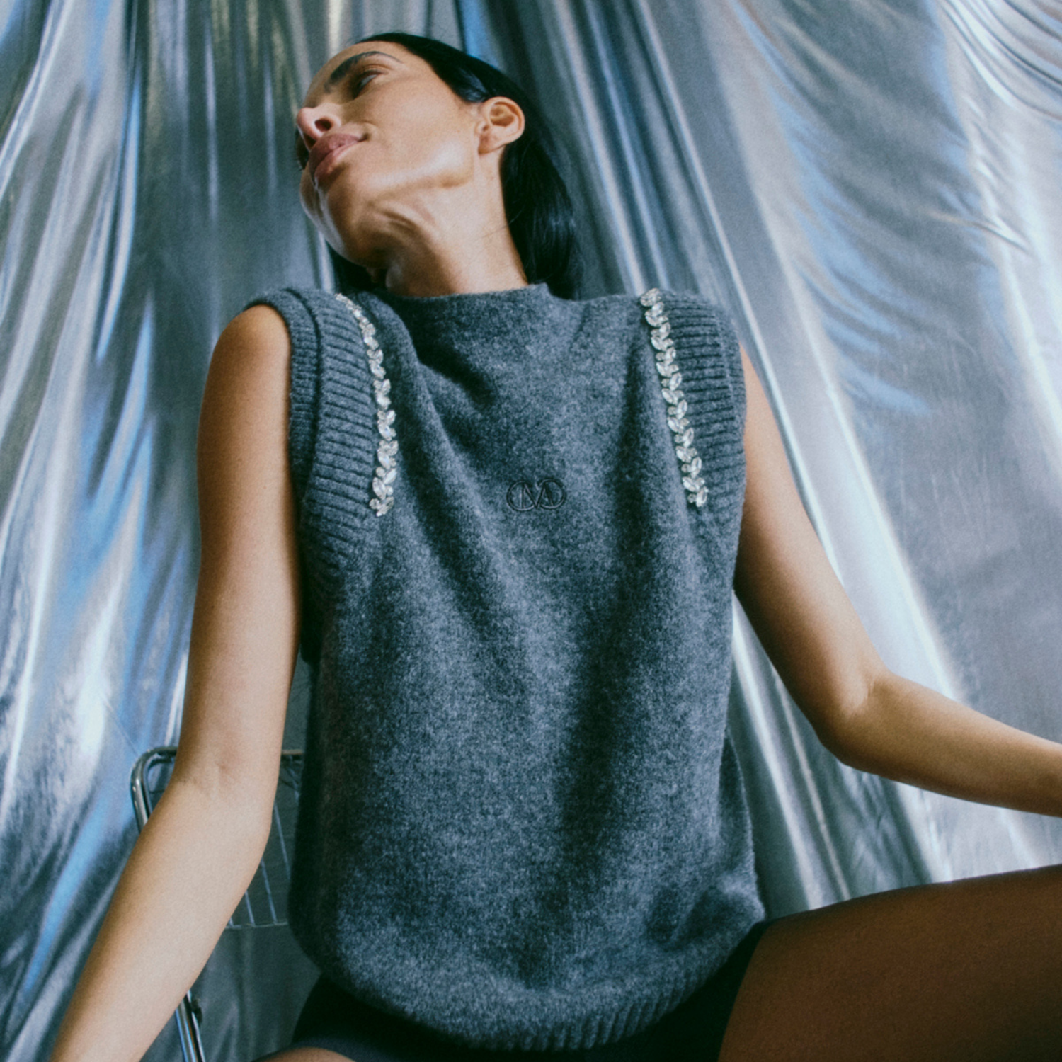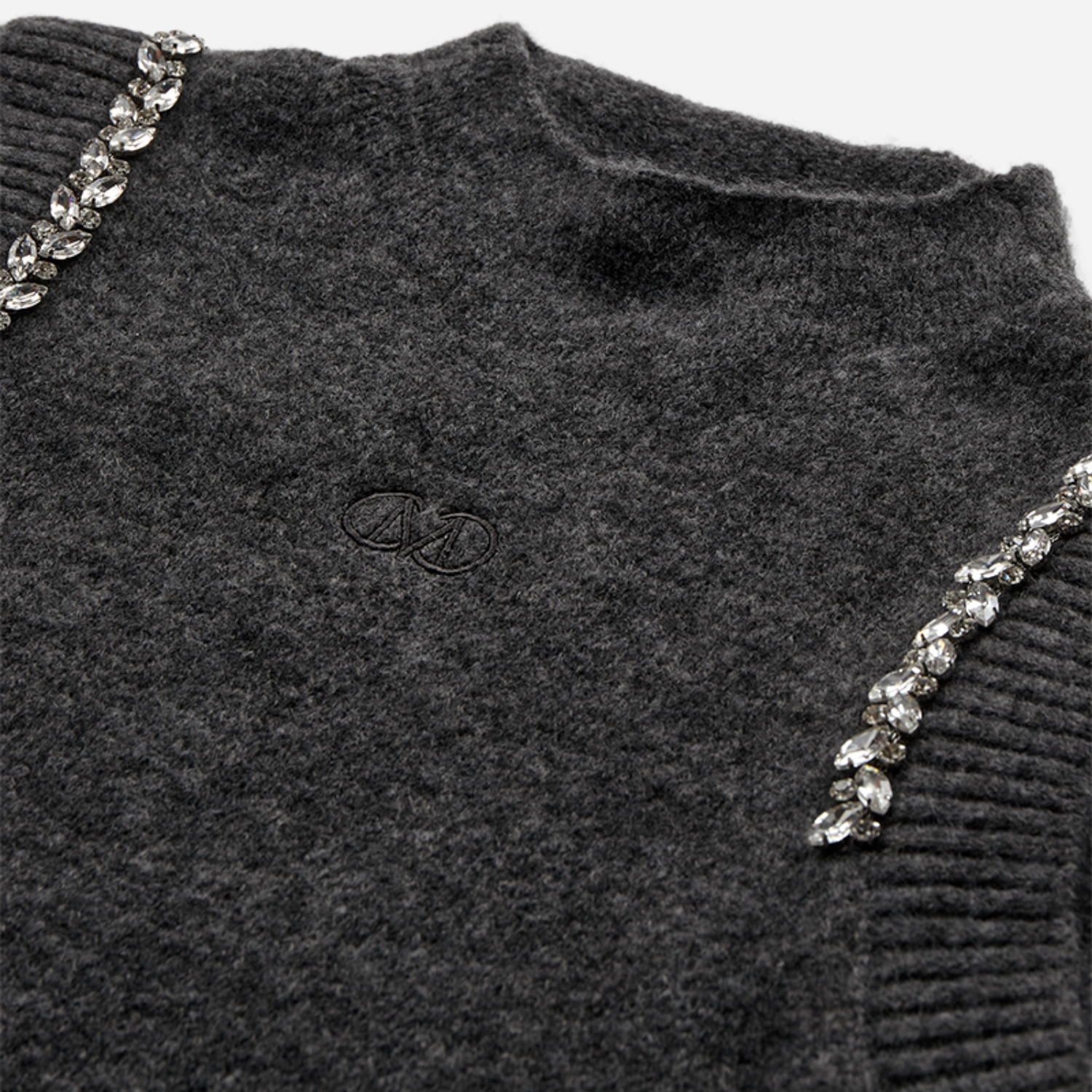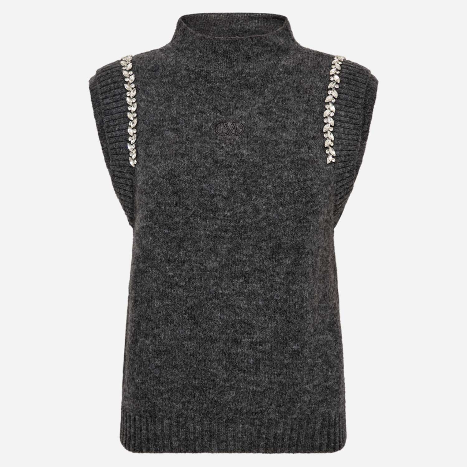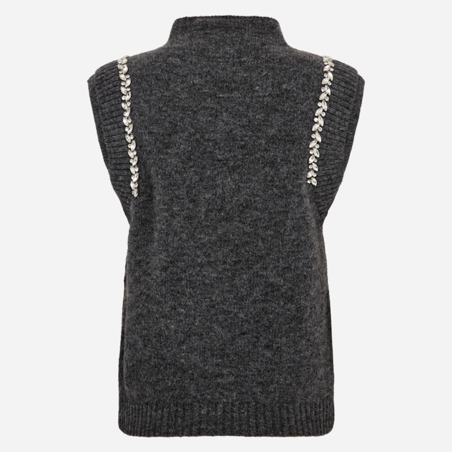 Strikket vest med flotte sten fra Copenhagen Muse i grå.
