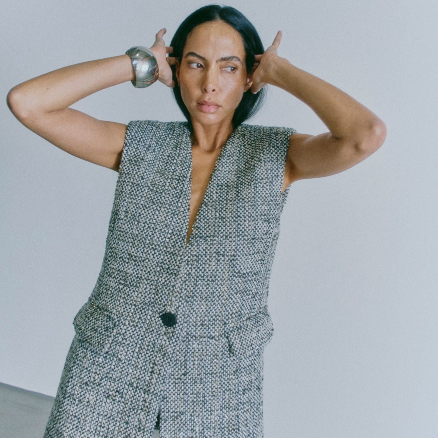 Oversized vest fra Copenhagen Muse i sort med lurex.