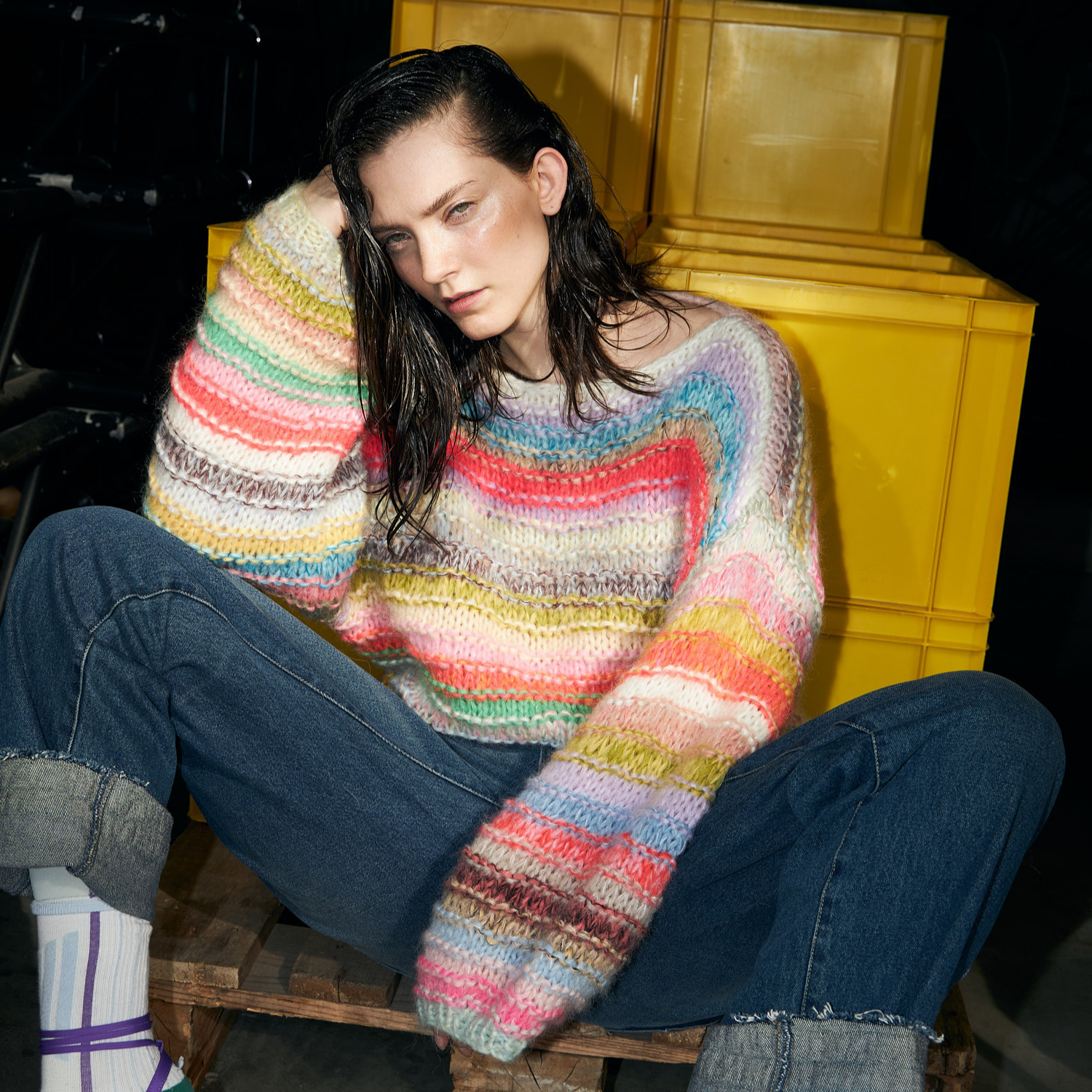 Unika håndsyet strik fra Dawn x Dare i flot multicolor.