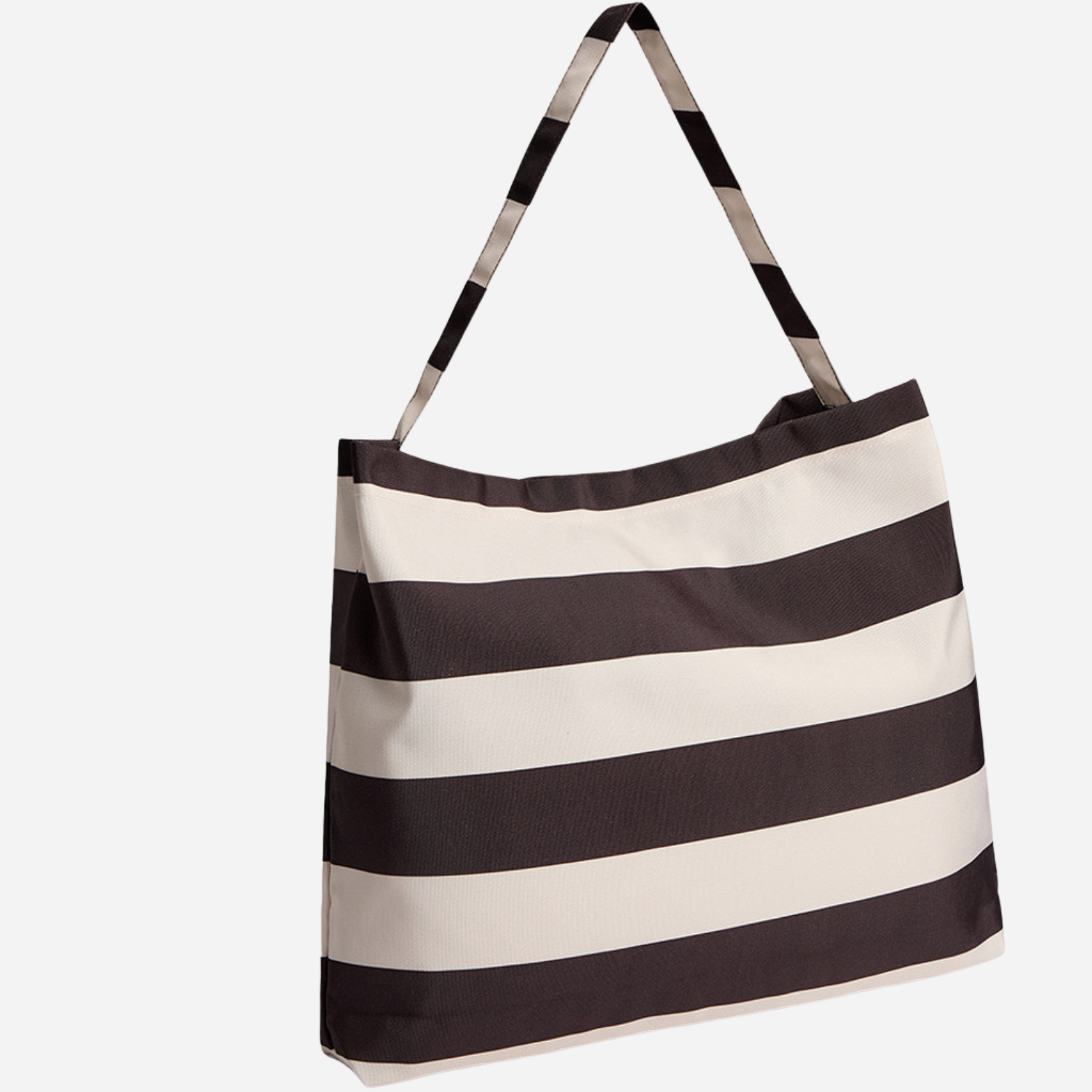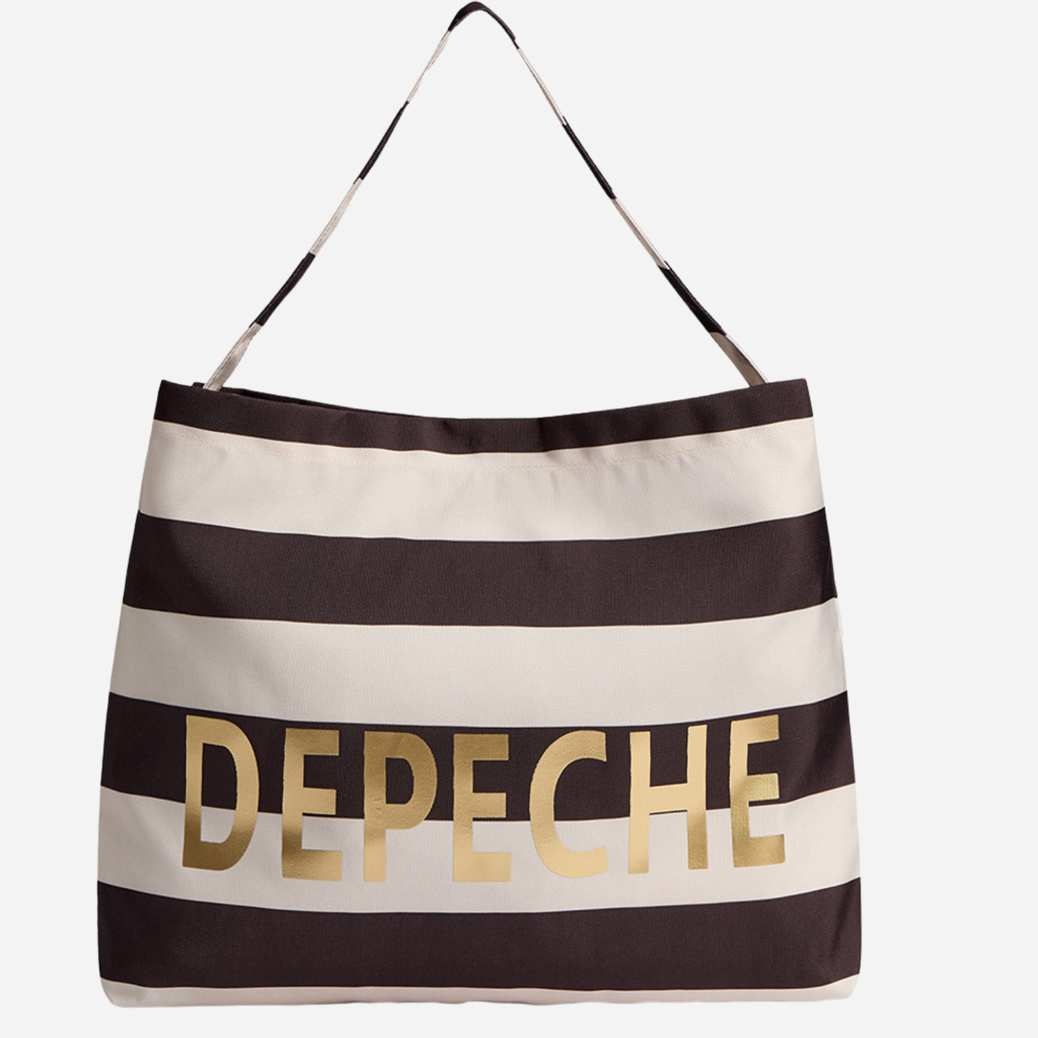 Stor stribet canvas shopper fra Depeche i brun og sandfarvet.