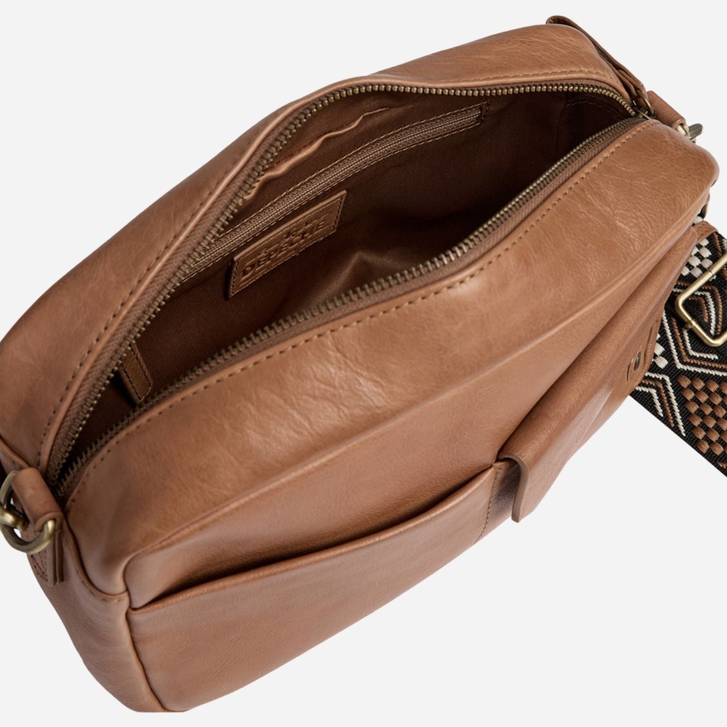 Lys brun cross over med tekstil skulderrem fra Depeche.