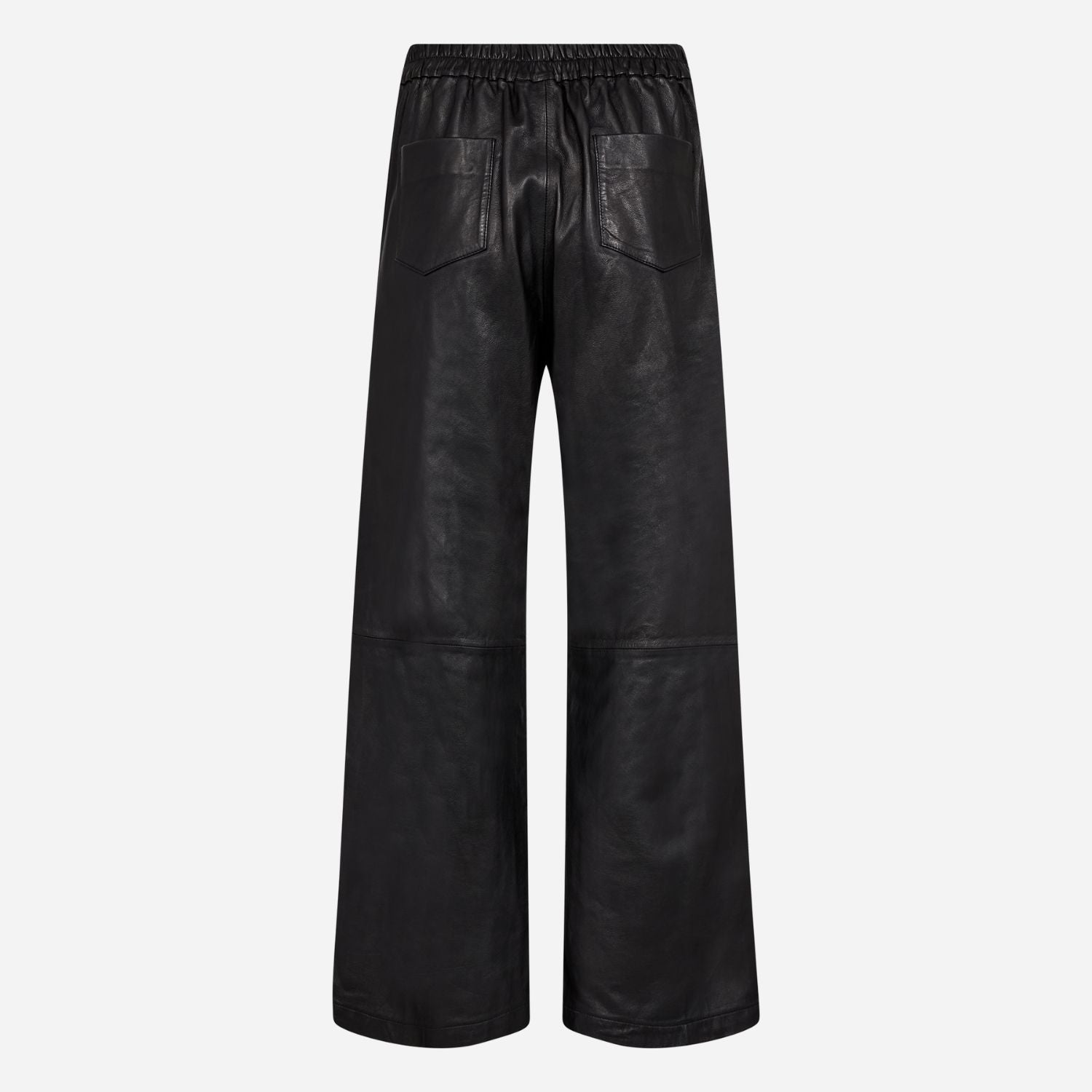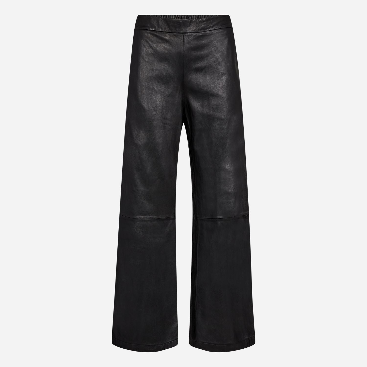 Løse, sorte skindbukser fra Depeche med slids i siden.
