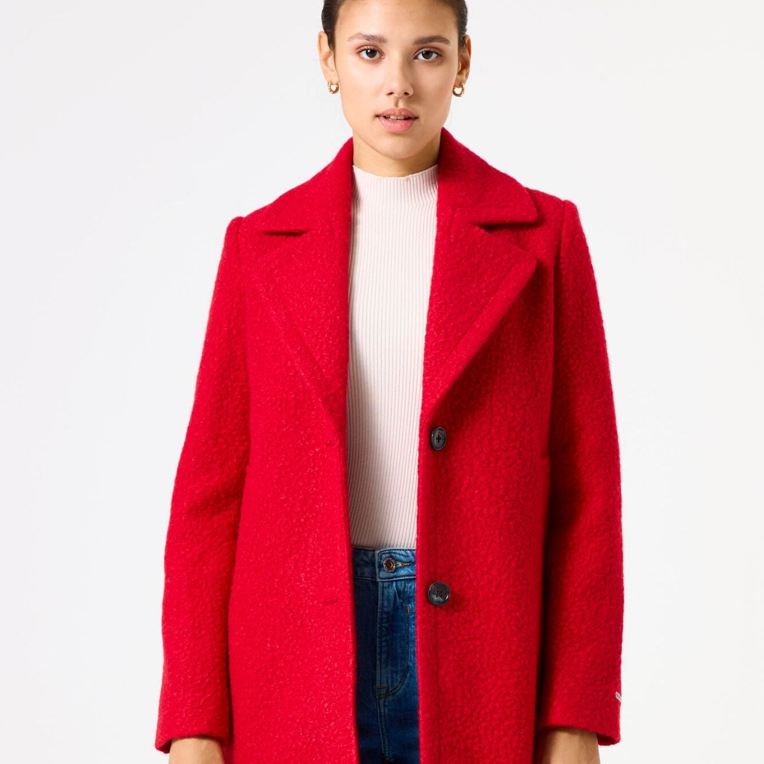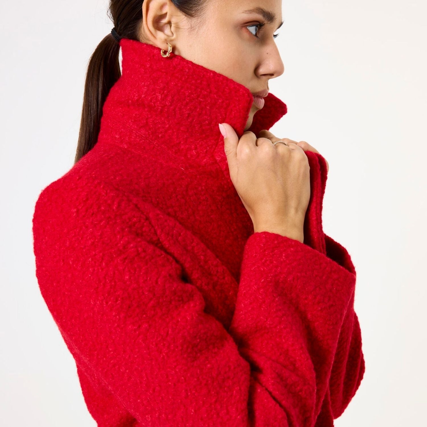 Rød medium lang teddy frakke fra Garcia.