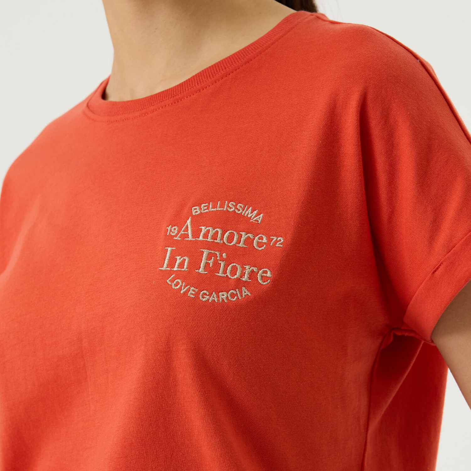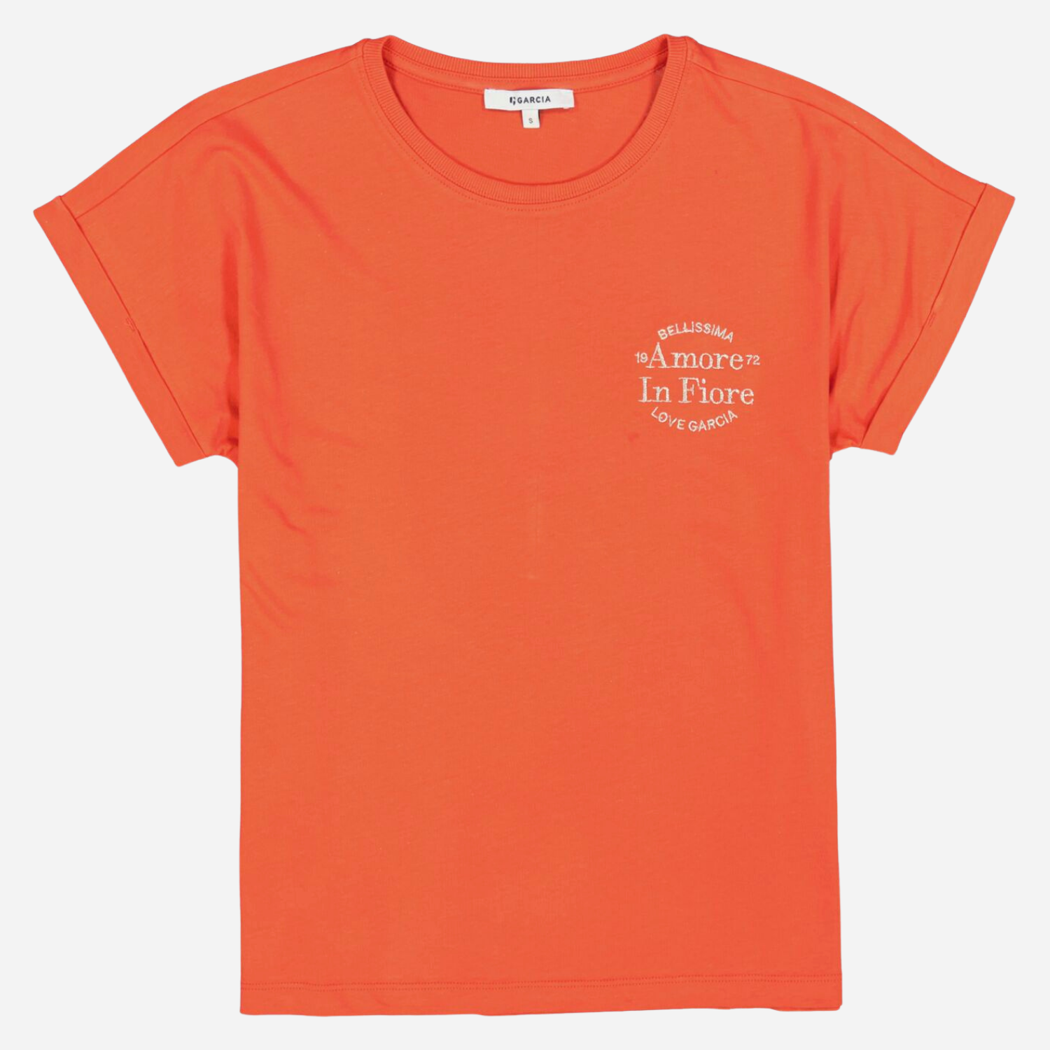Kortærmet orange / rød t-shirt fra Garcia med rund halsudskæring.