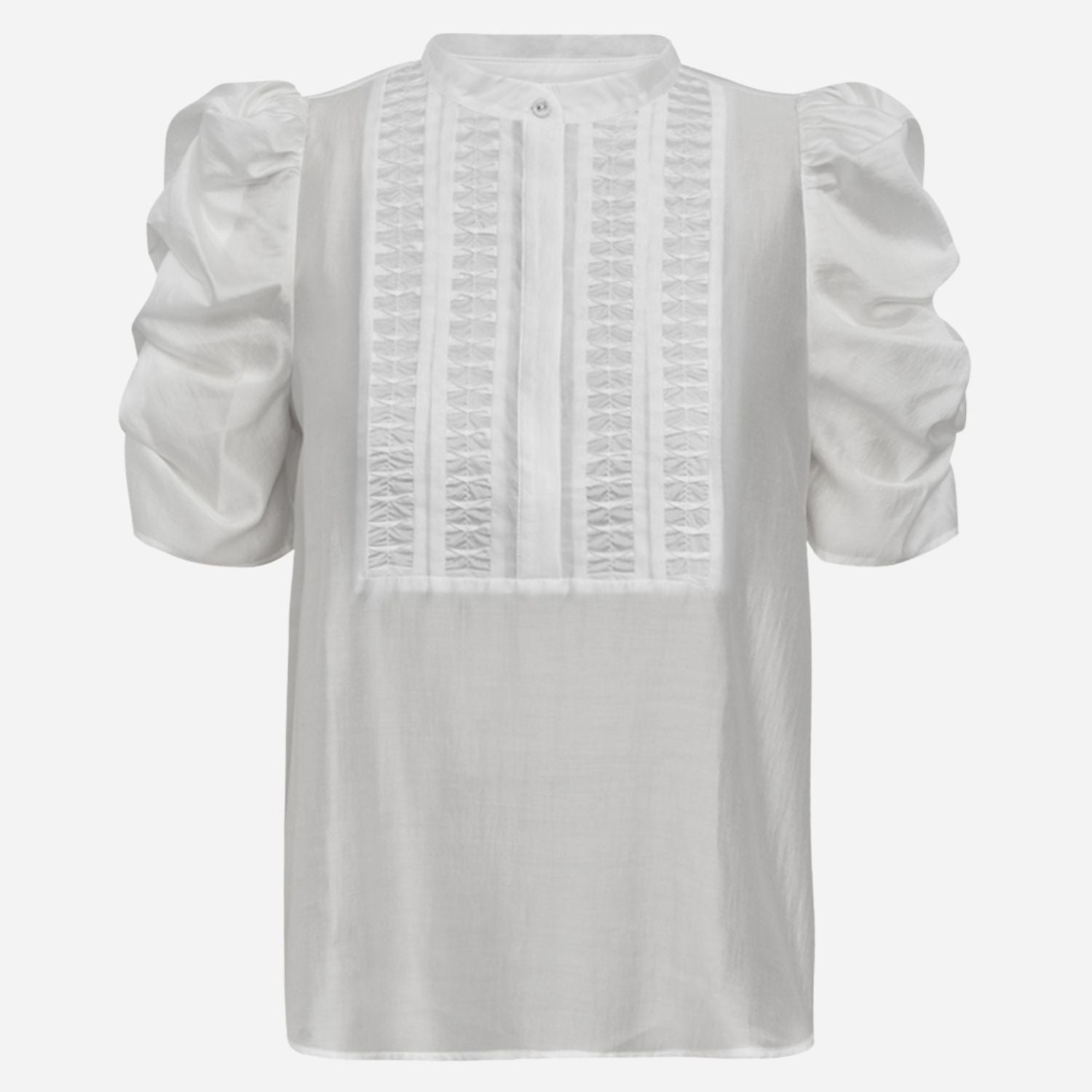 Flot hvid bluse fra Gossia med korte puff ærmer.