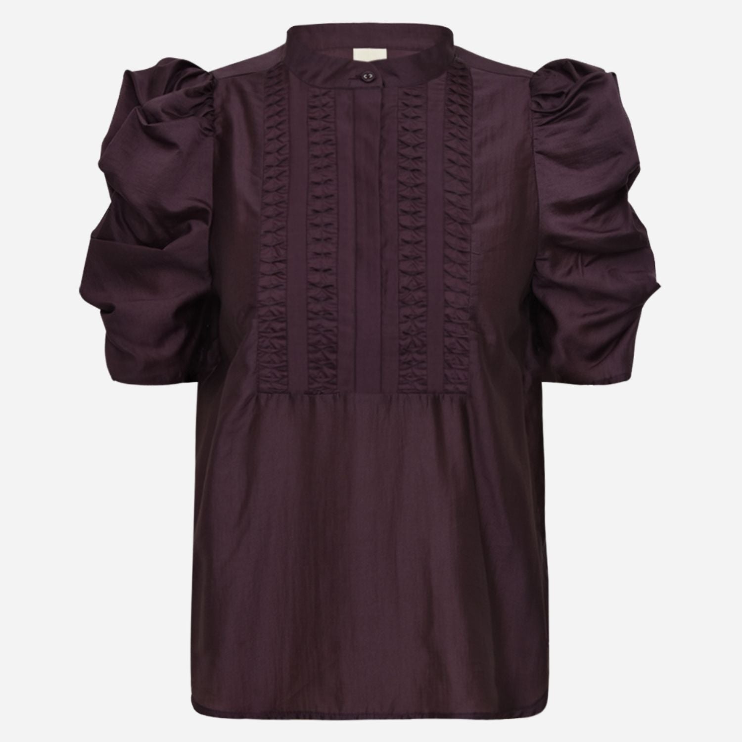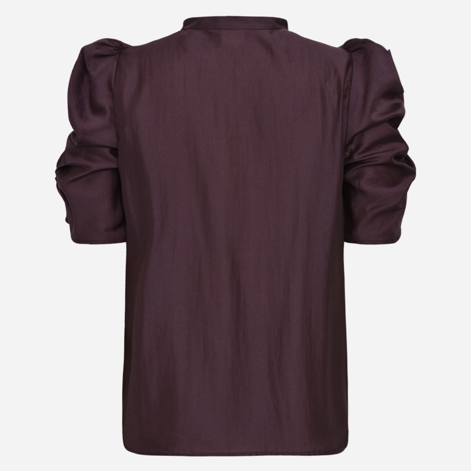 Flot bordeaux bluse fra Gossia med korte puff ærmer.