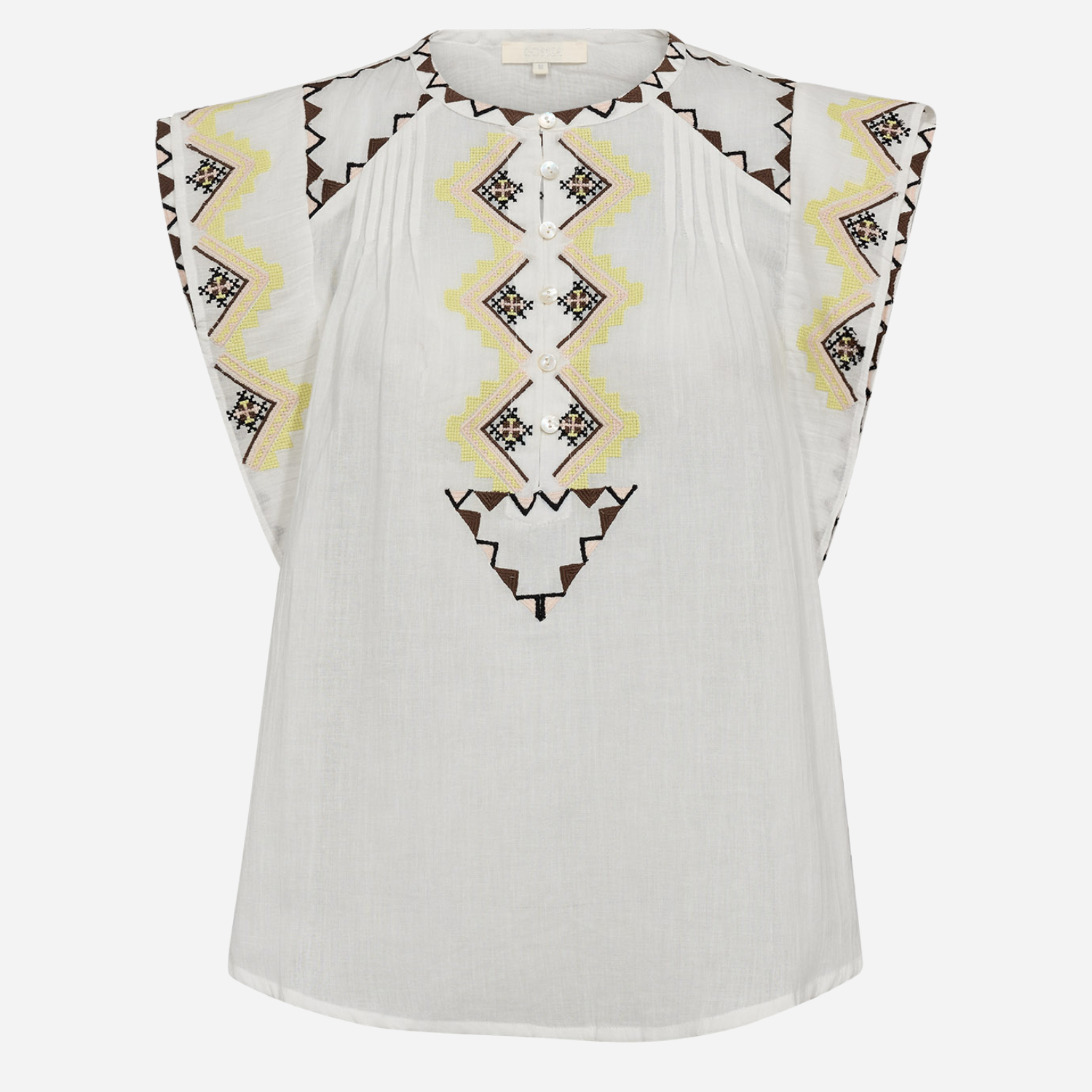 Smuk hvid top fra Gossia med flotte broderet detaljer.
