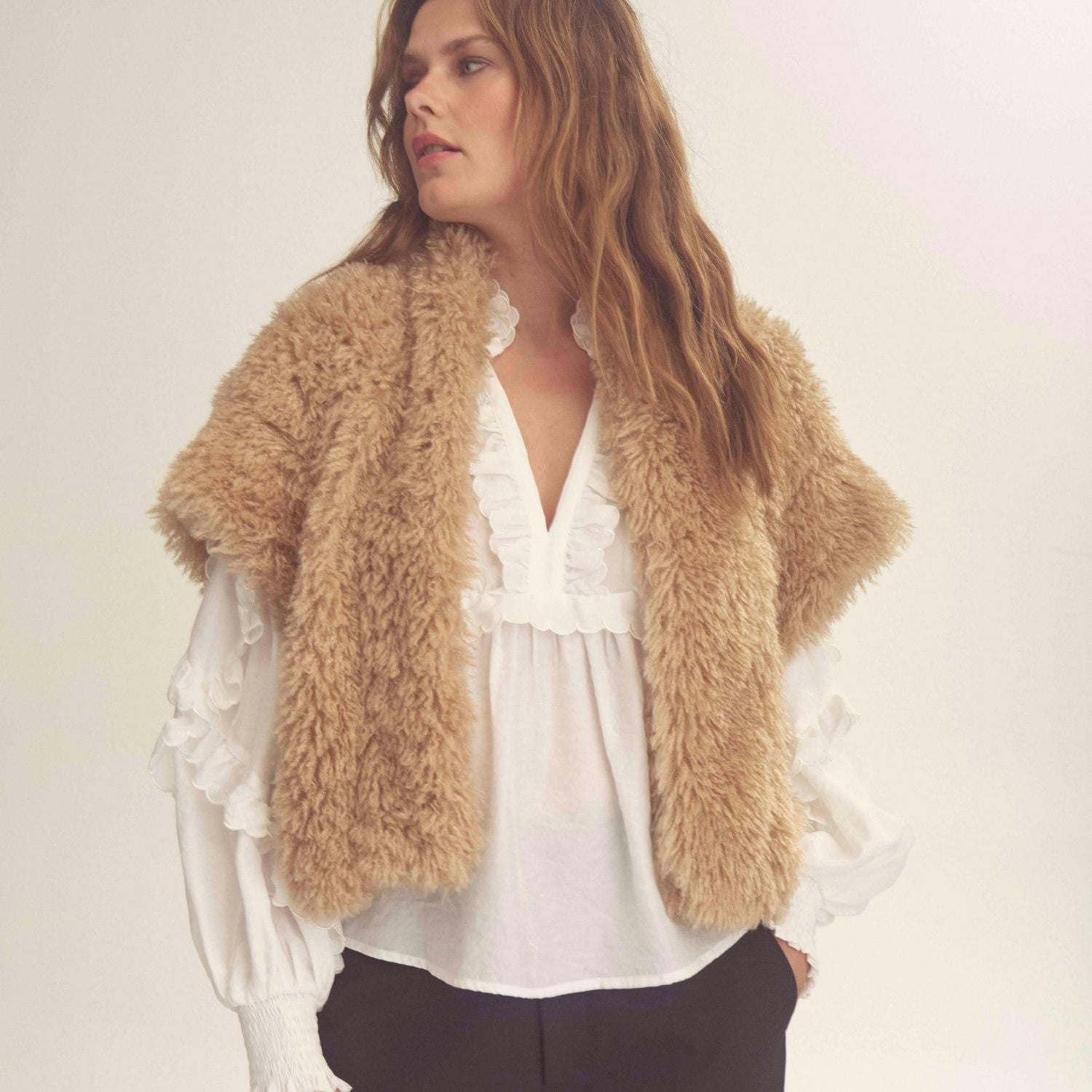 Kunstpels vest fra Gossia i sandfarvet.
