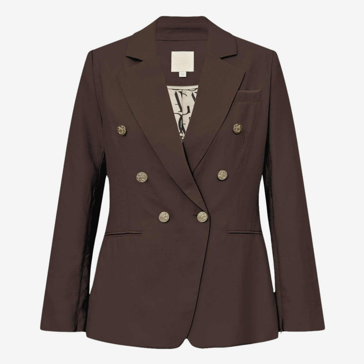 Smuk blazer med guldknapper fra Gossia i mørkebrun