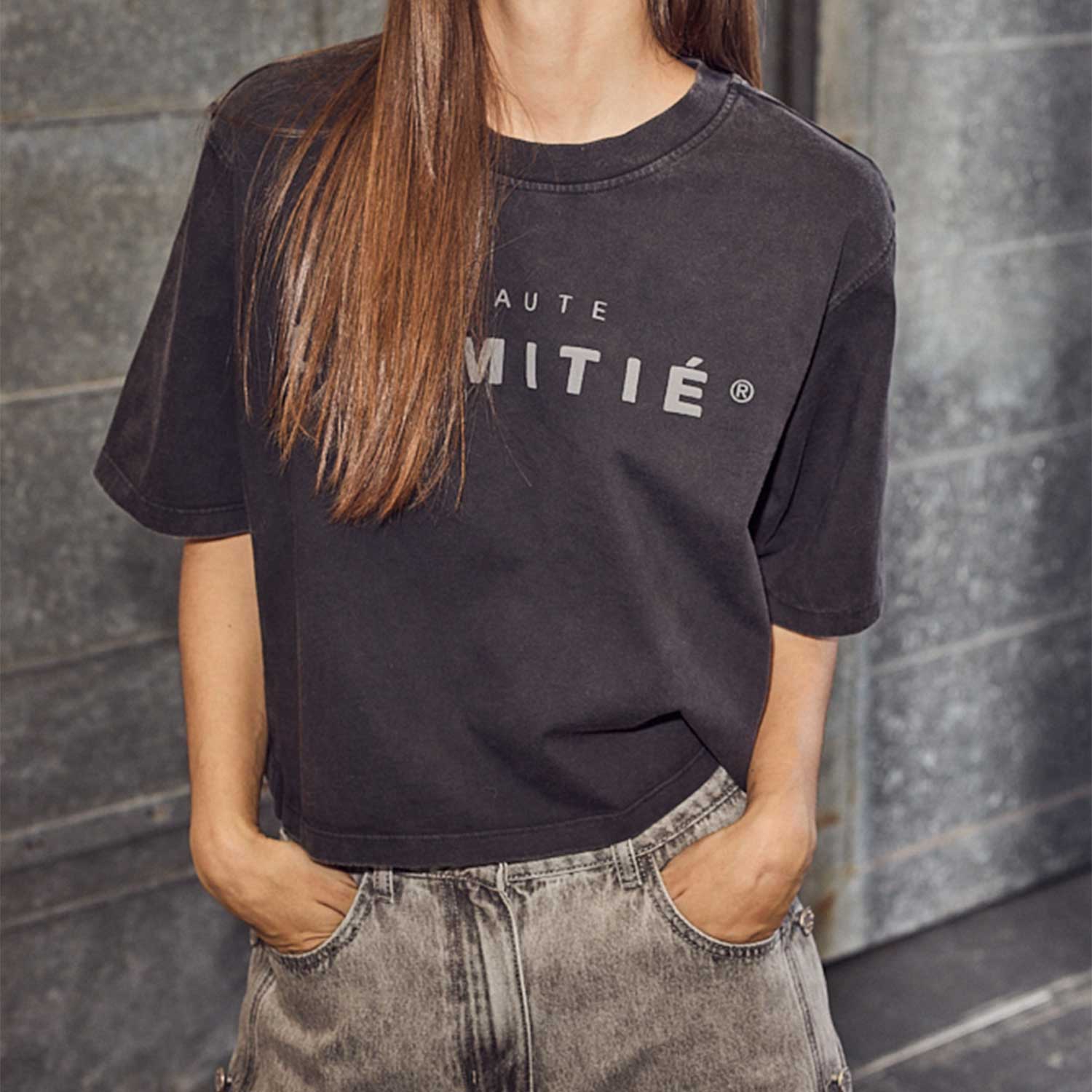 Cropped t-shirt med logo fra Haute L'Amitié i sort.
