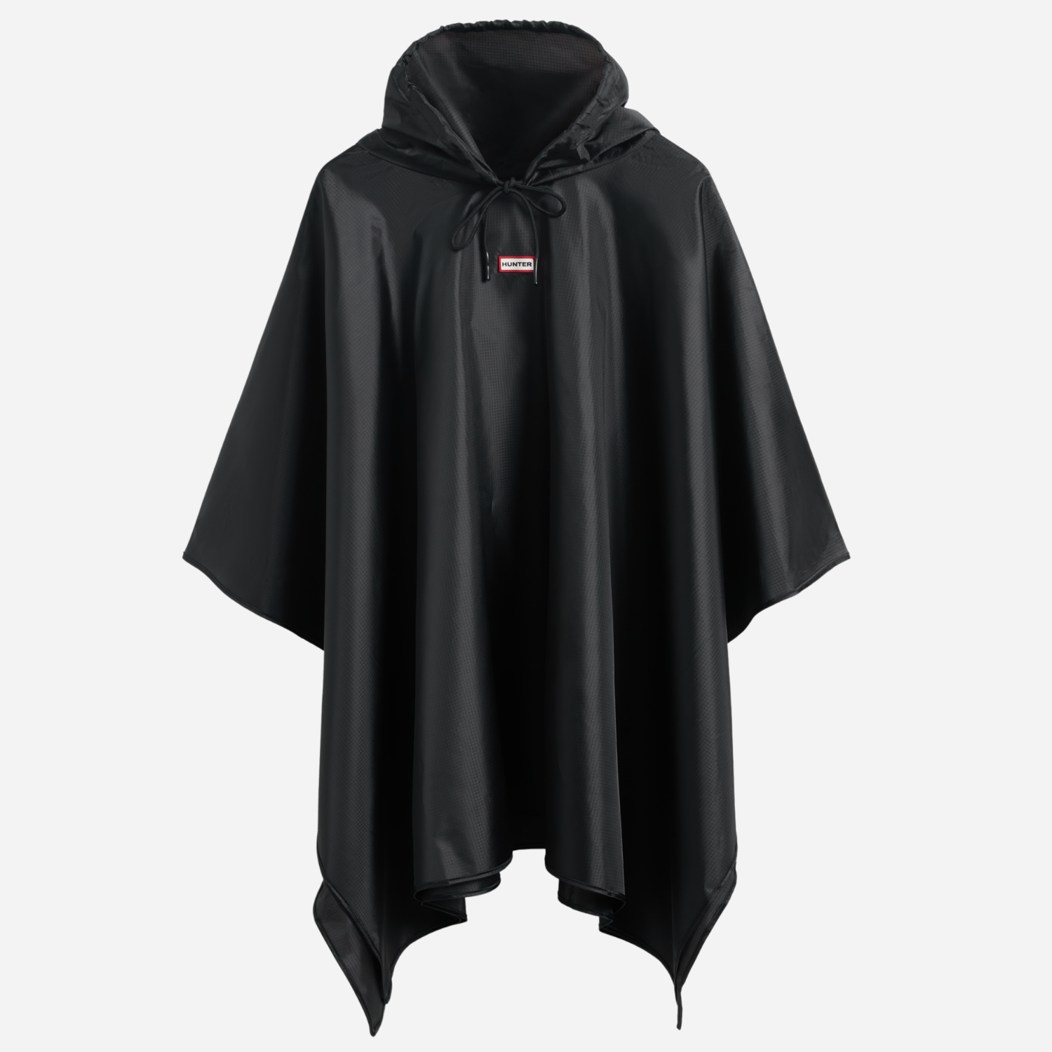 Løs og oversized sort vandtæt poncho fra Hunter med hætte.