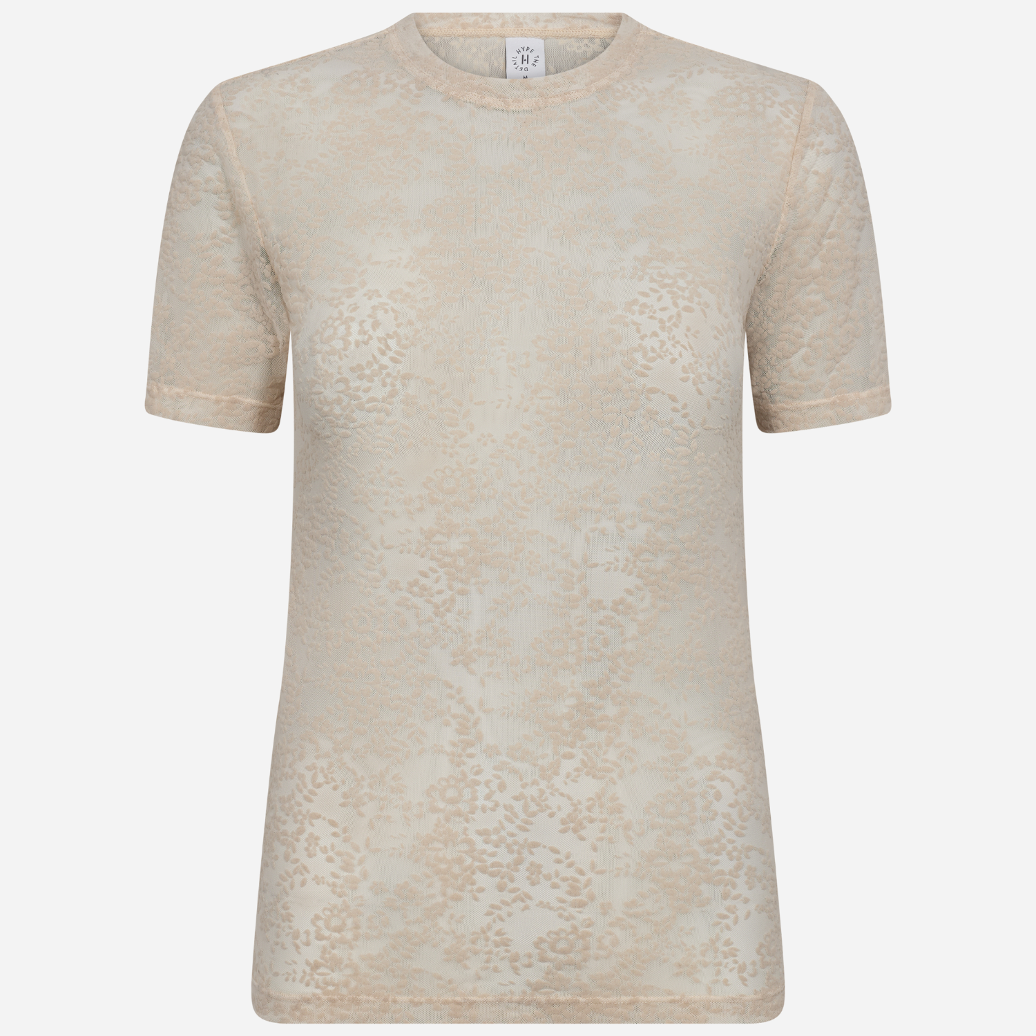 Cremefarvet mesh t-shirt med flot velour mønster fra Hype The Detail.