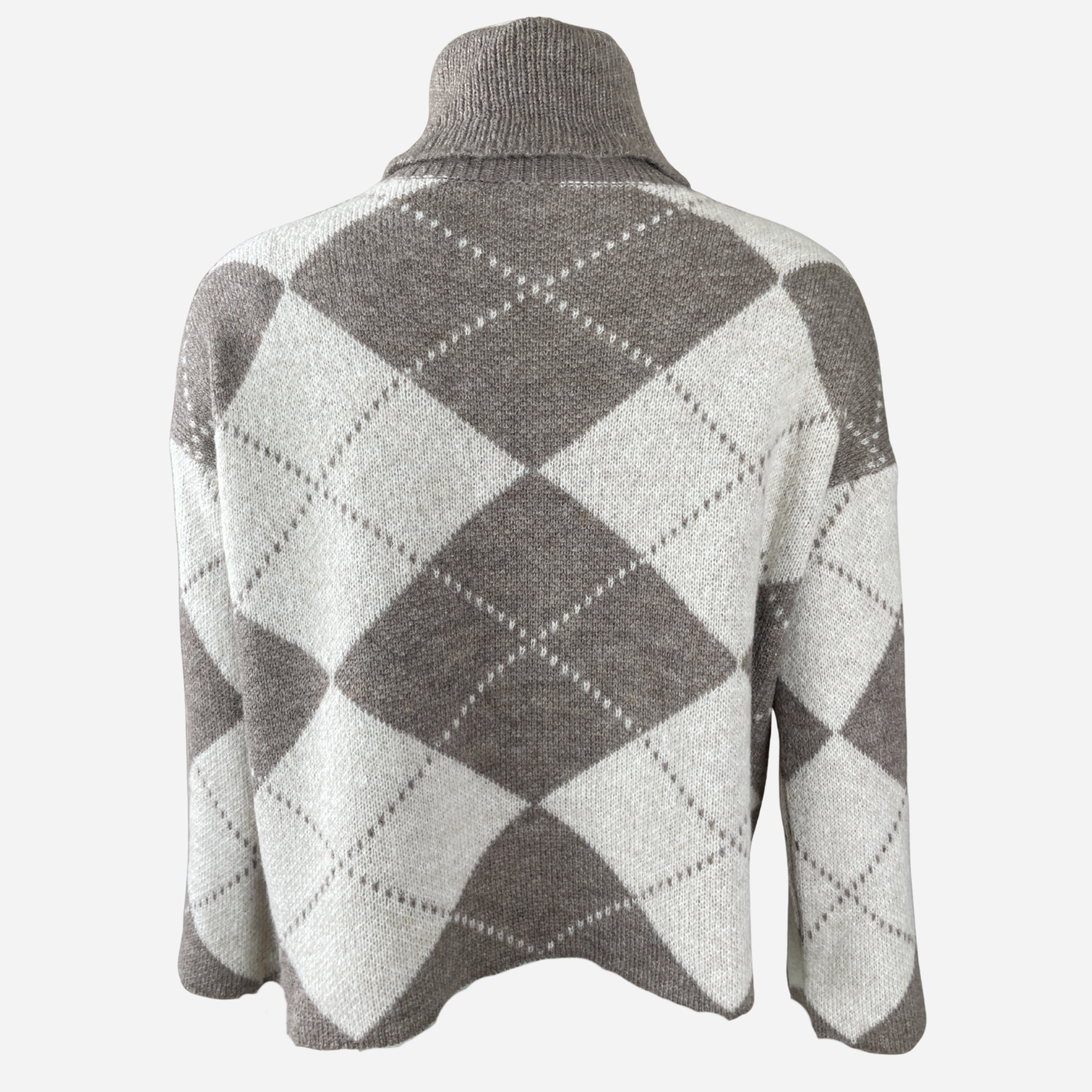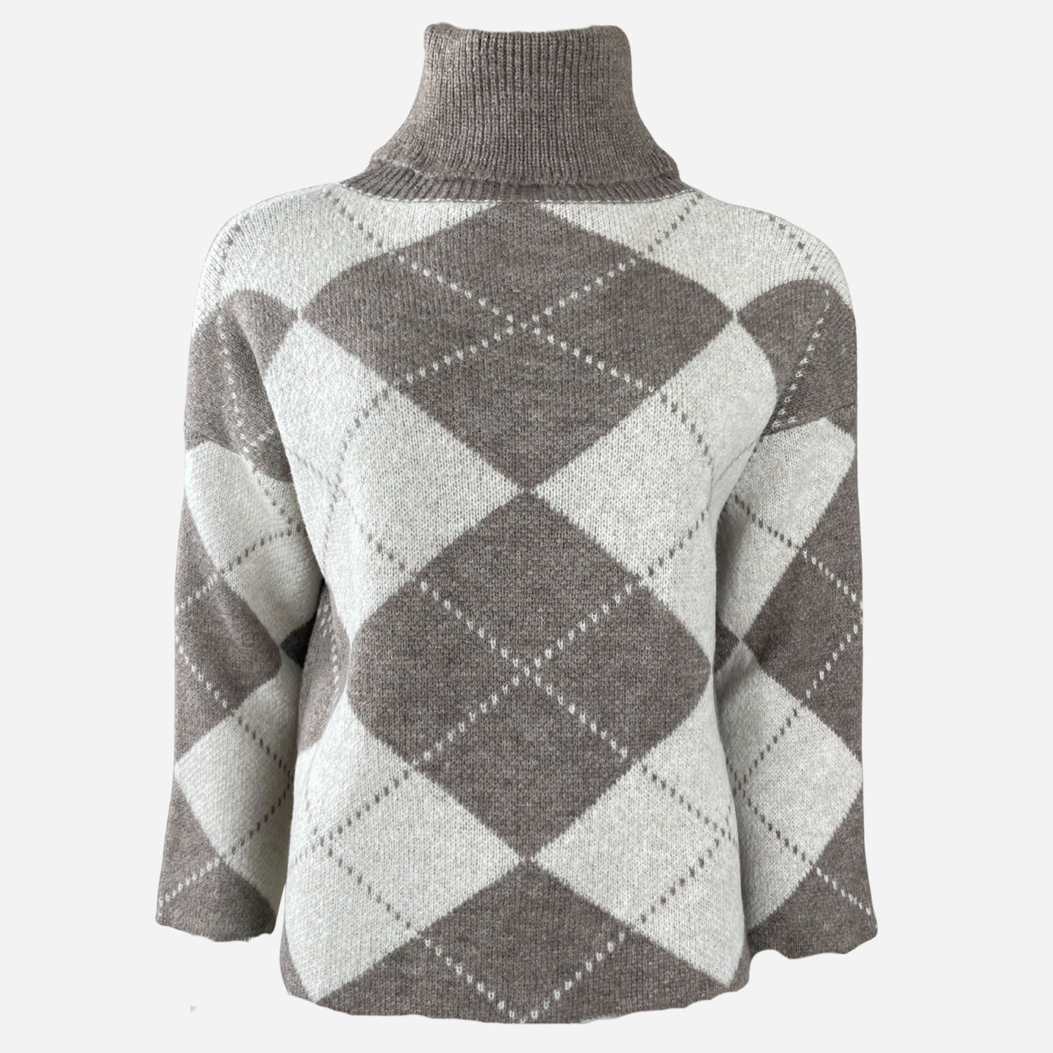 J By J 163 Check Roll Neck Knit Beige