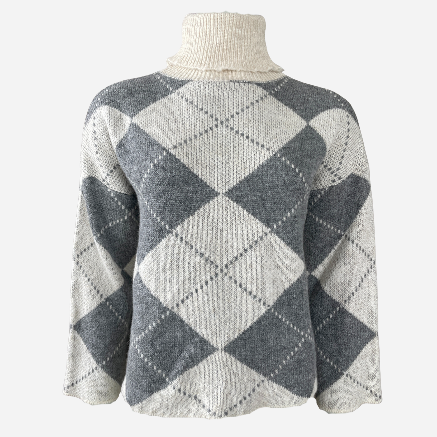 J By J 163 Check Roll Neck Knit Grey