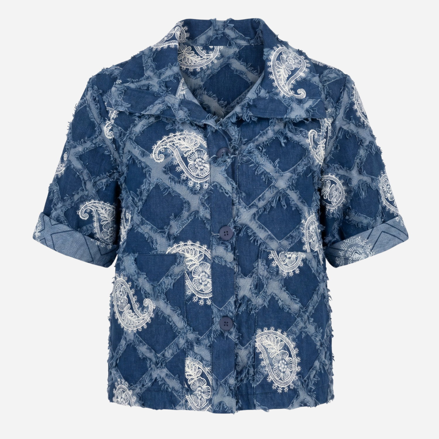 Kortærmet denim jakke fra J By J i blå med frynser.
