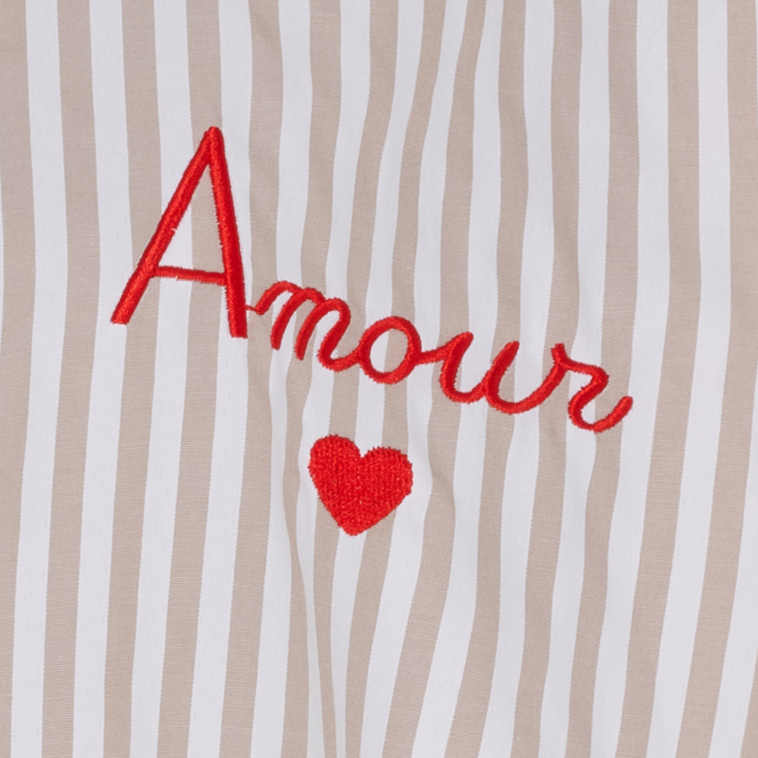 - Amore broder på brystet og broderet hjerter ved manchetten