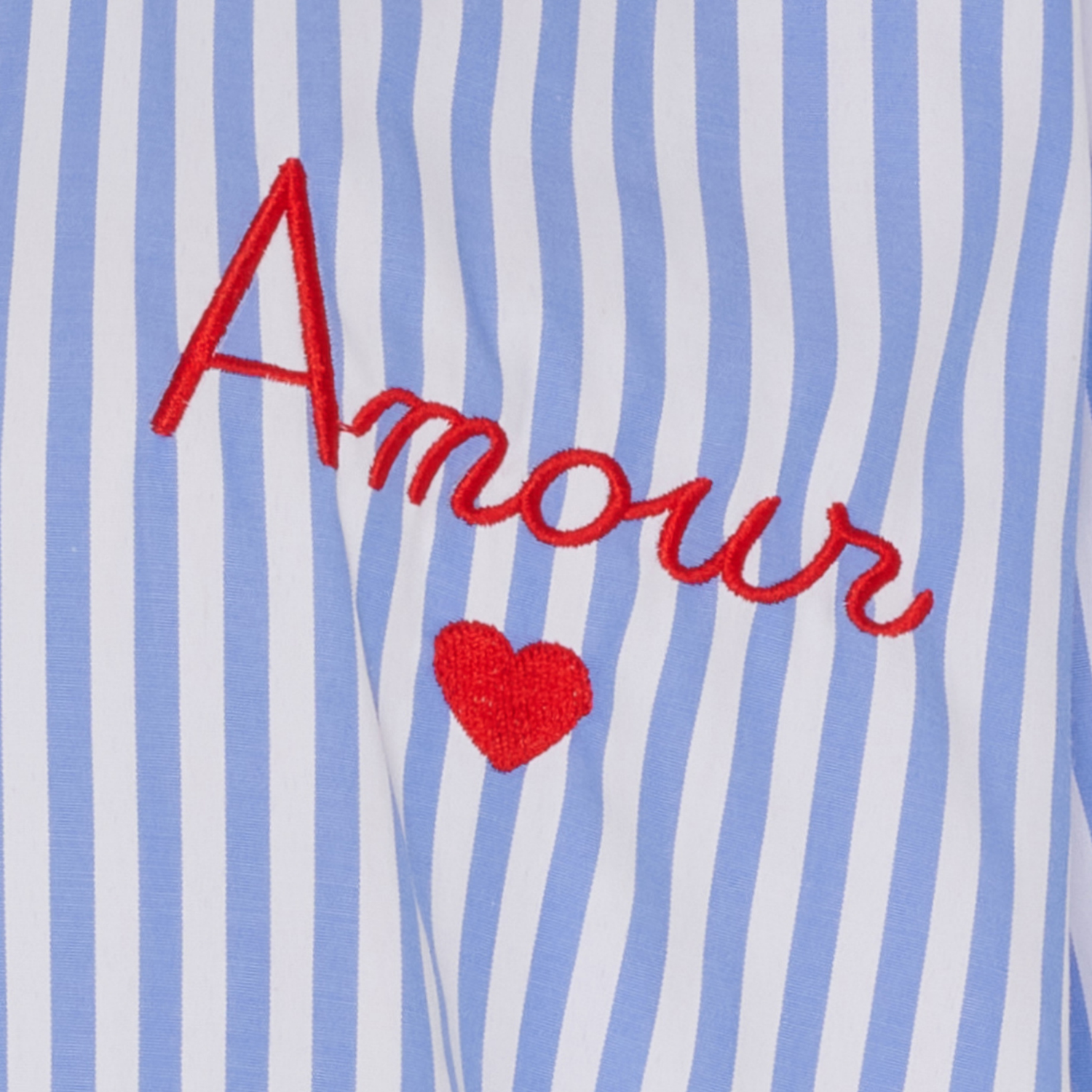 - Amore broder på brystet og broderet hjerter ved manchetten
