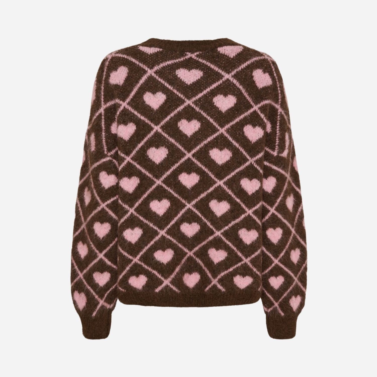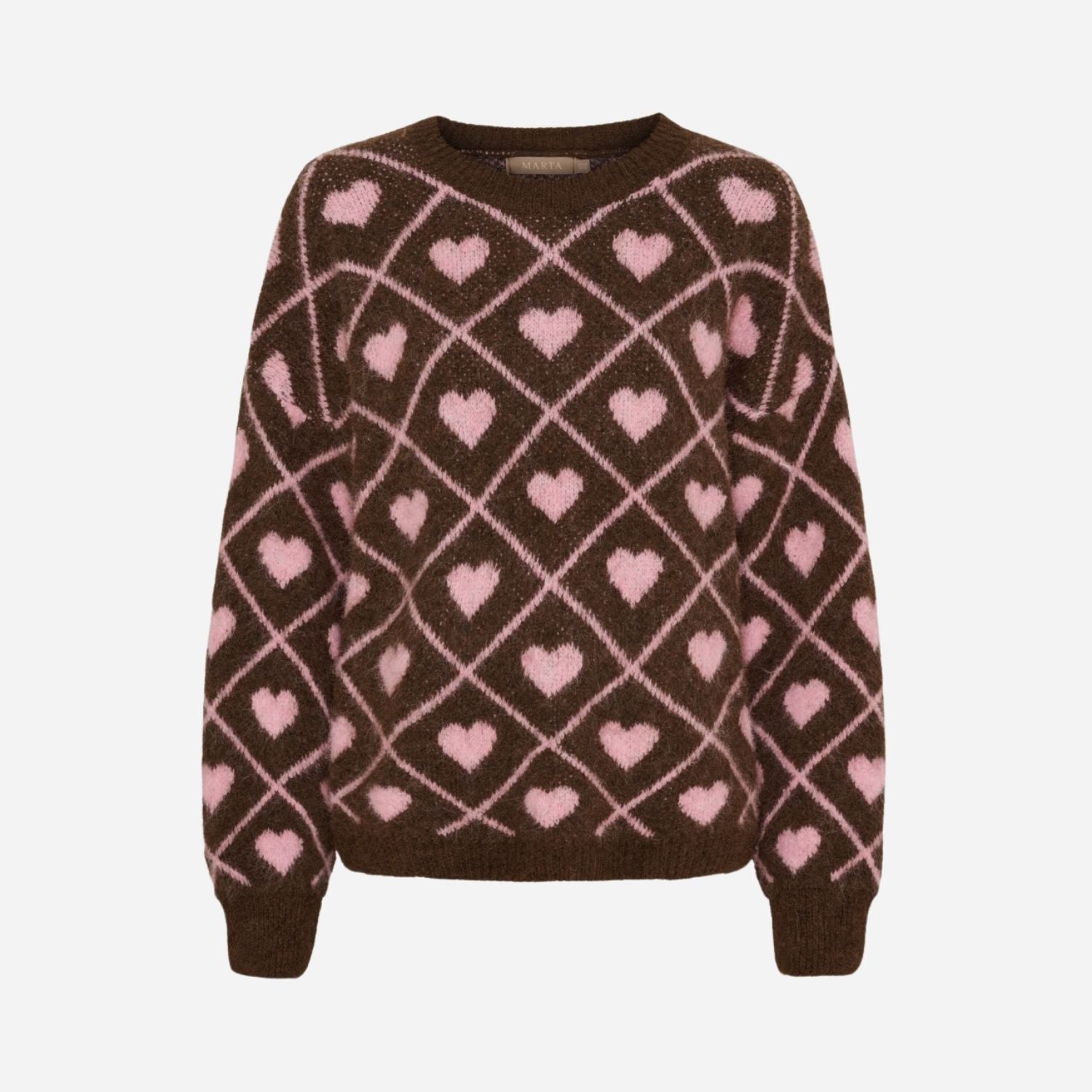 Hjerte mønstret strik fra Marta Du Chateau i brun og rosa.
