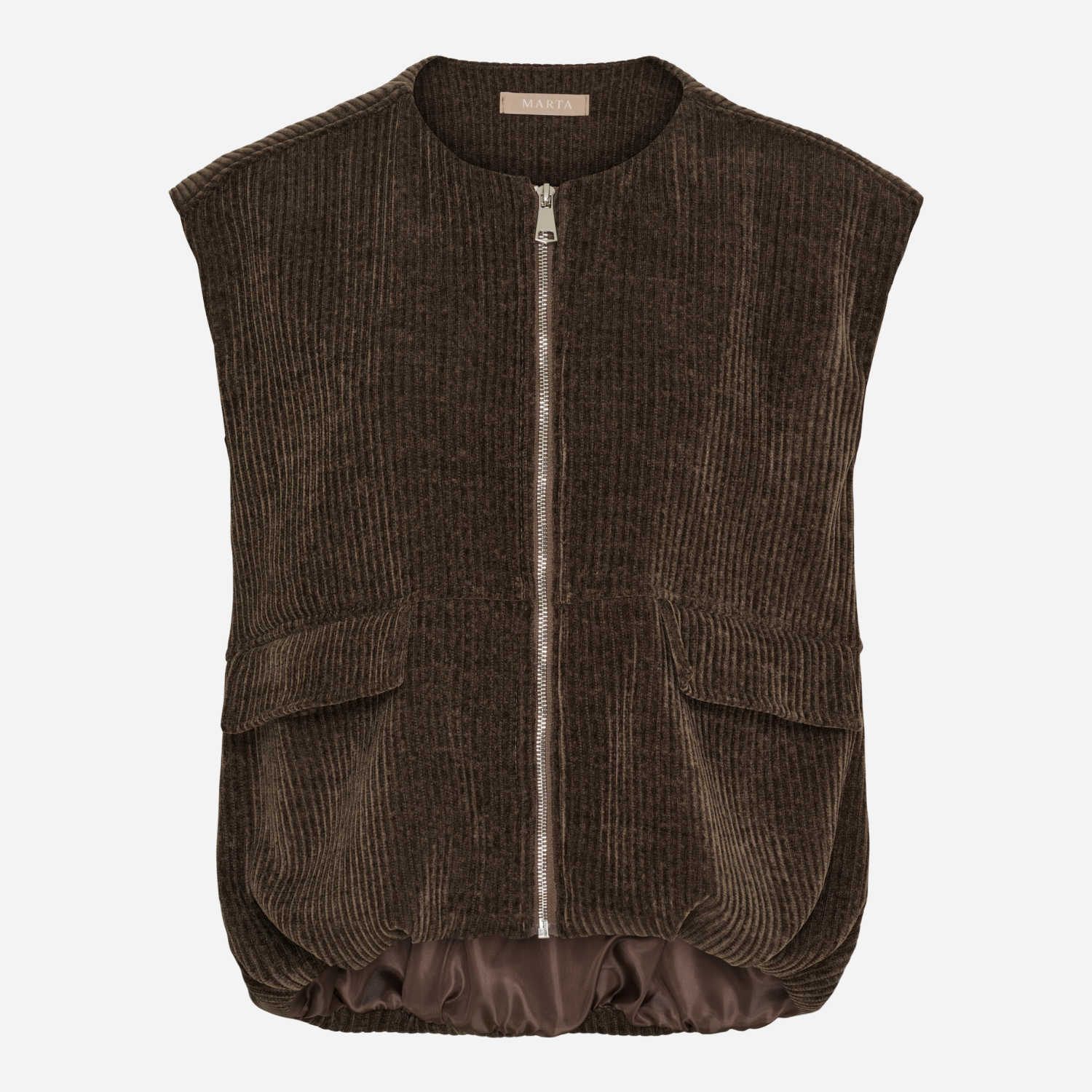 Fløjls veste med lynlås fra Marta Du Chateau i brun.