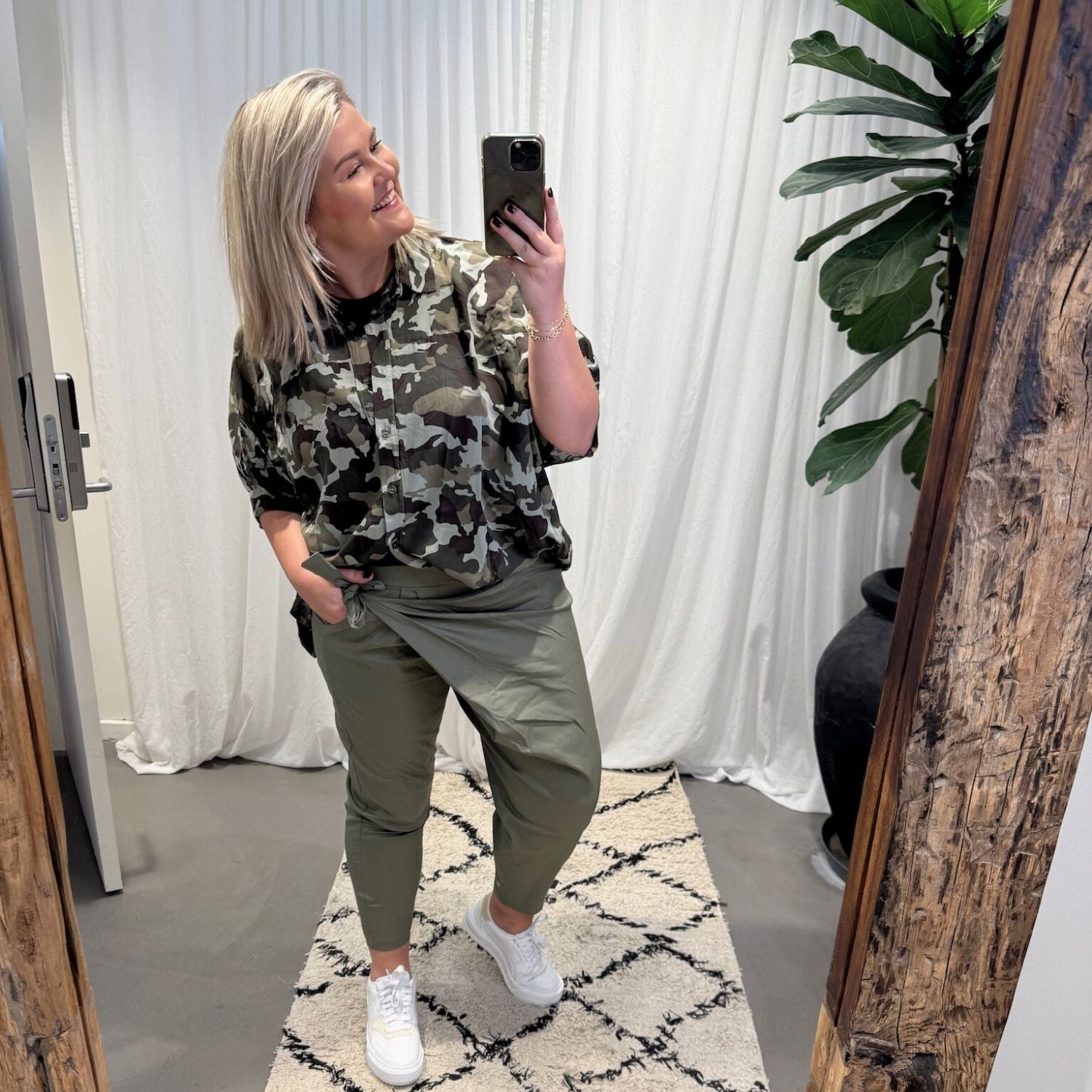 Camouflage skjorte med flagermusærme fra Marta Du Chateau.