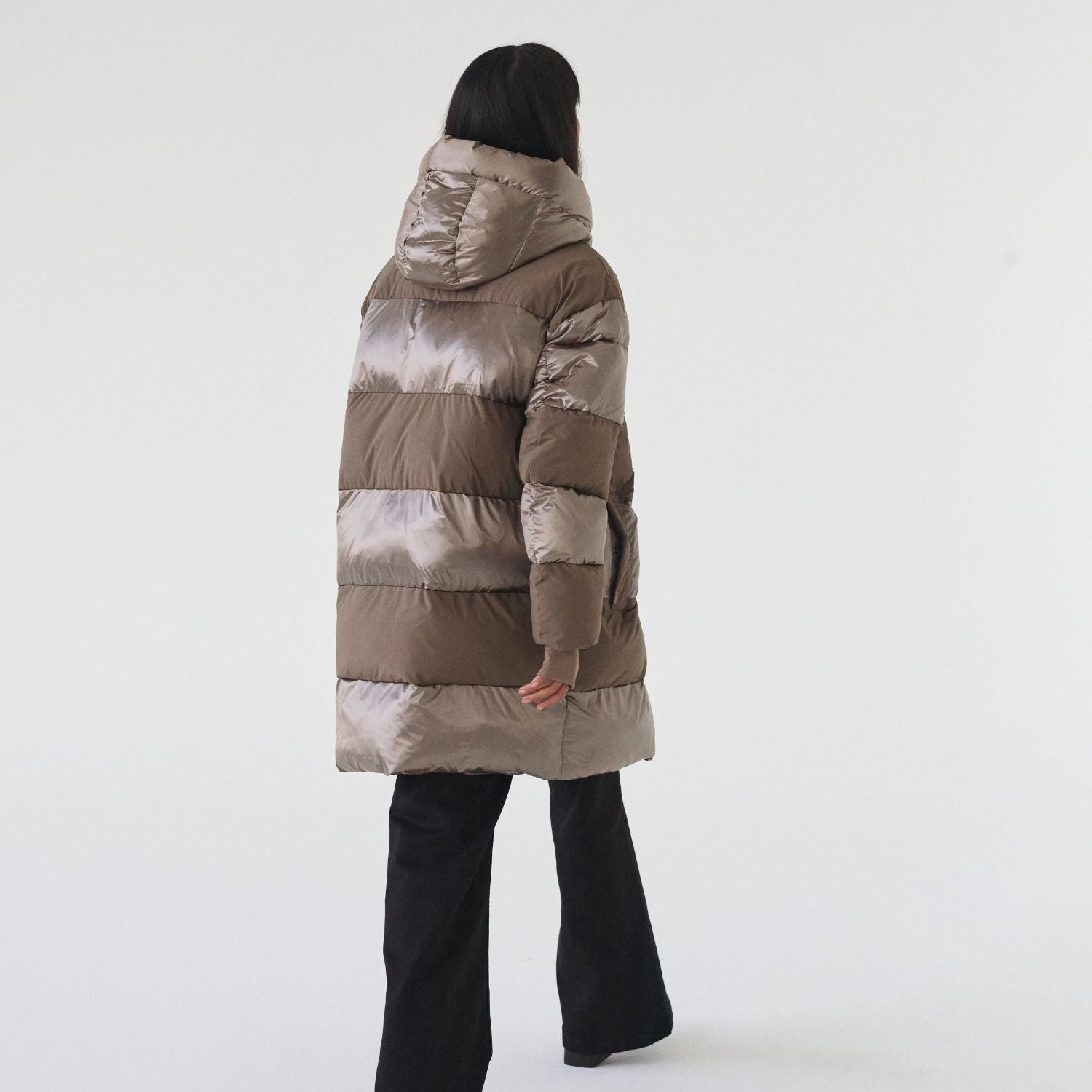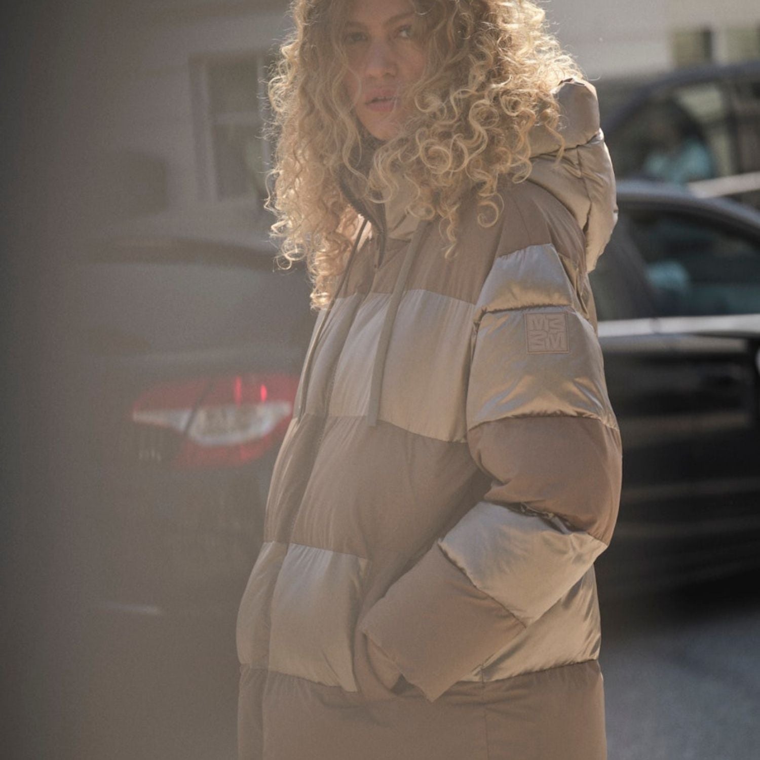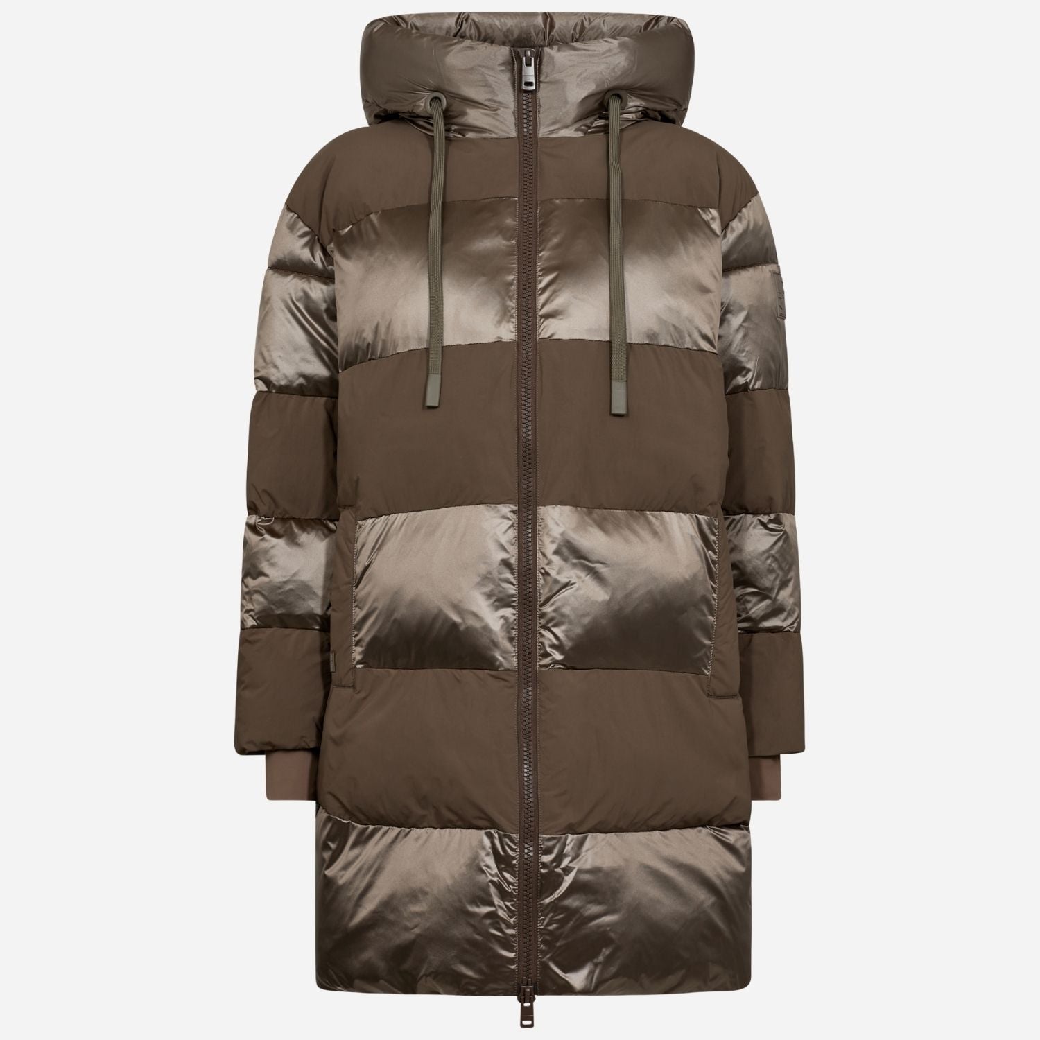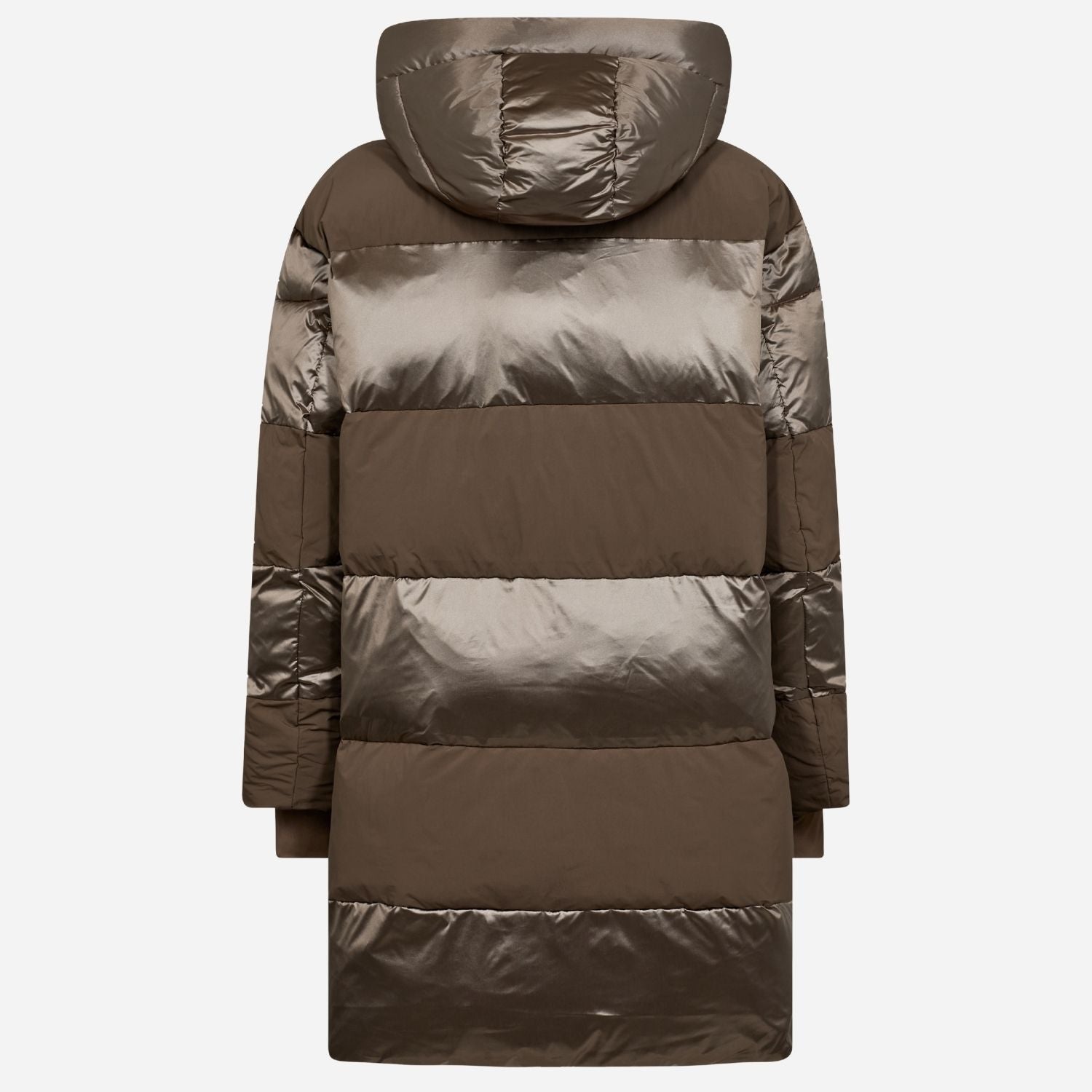 Brun vinterjakke fra Mos Mosh med flot blok quilt.