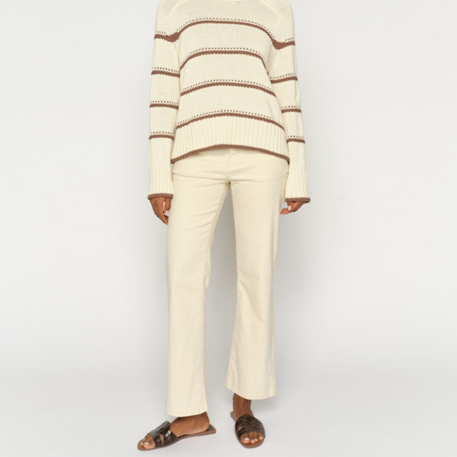Råhvide super stretch jeans fra Mos Mosh med flare.