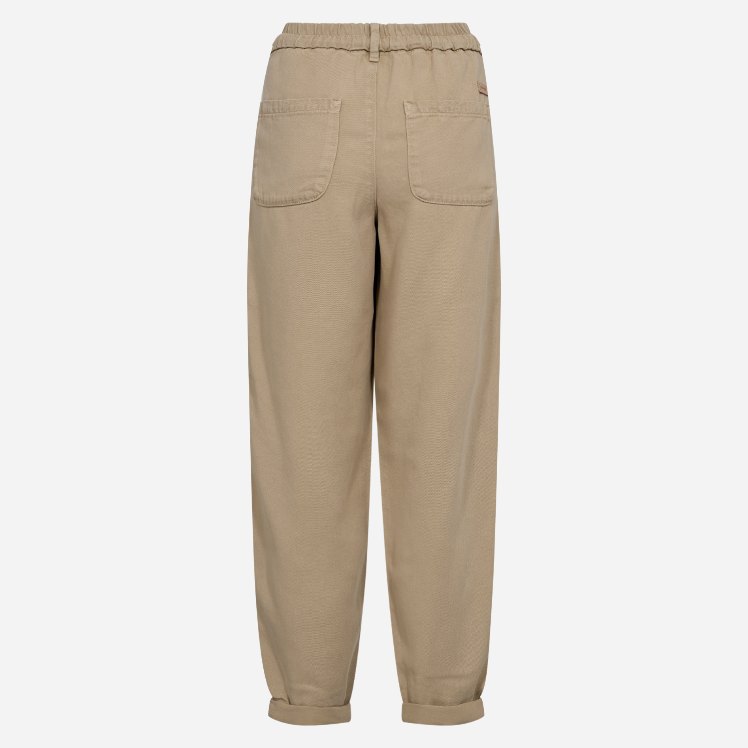 Sandfarvet løse jog bukser fra Mos Mosh med elastikkant i taljen.