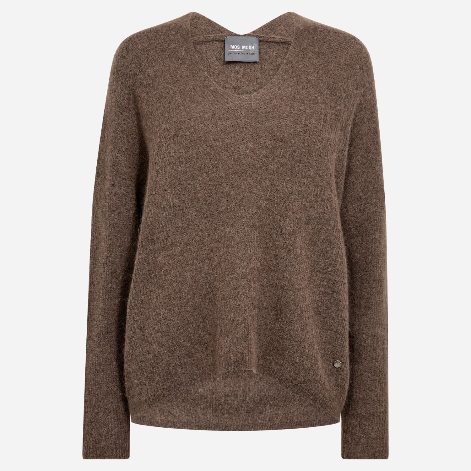 Lys brun elegant strik med v-udskæring fra Mos Mosh