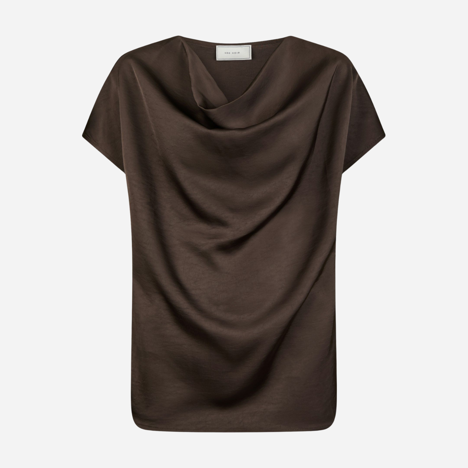 Sød satin t-shirt fra Neo Noir i mørkebrun