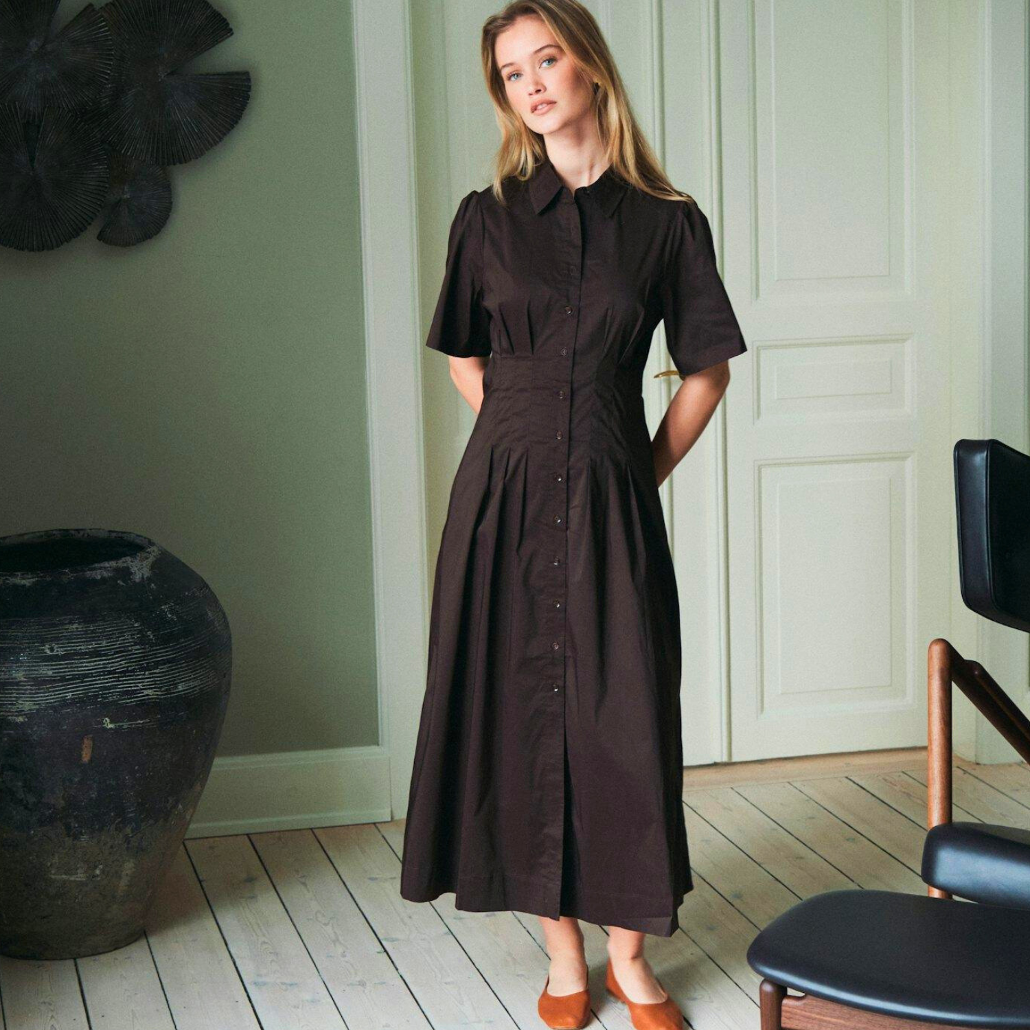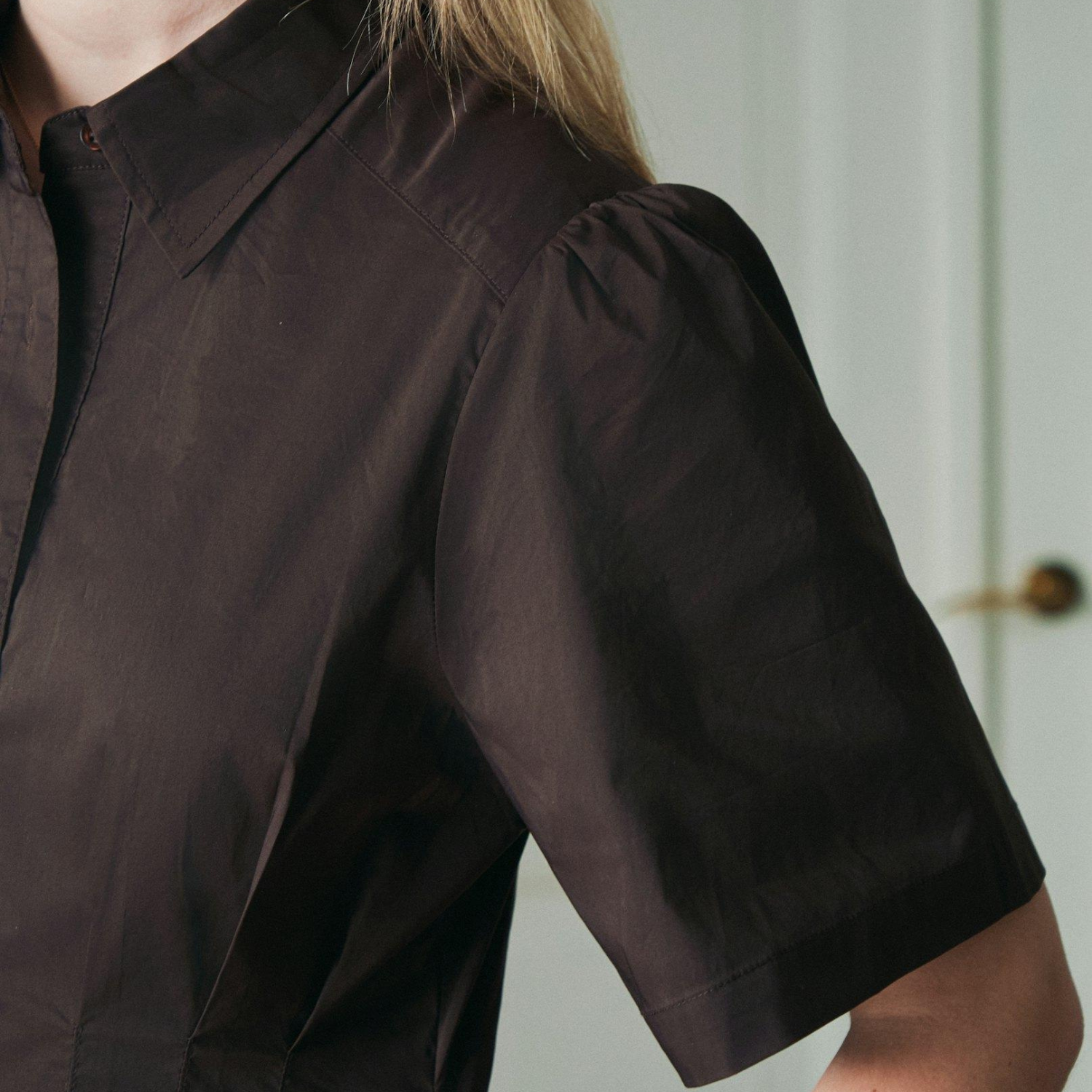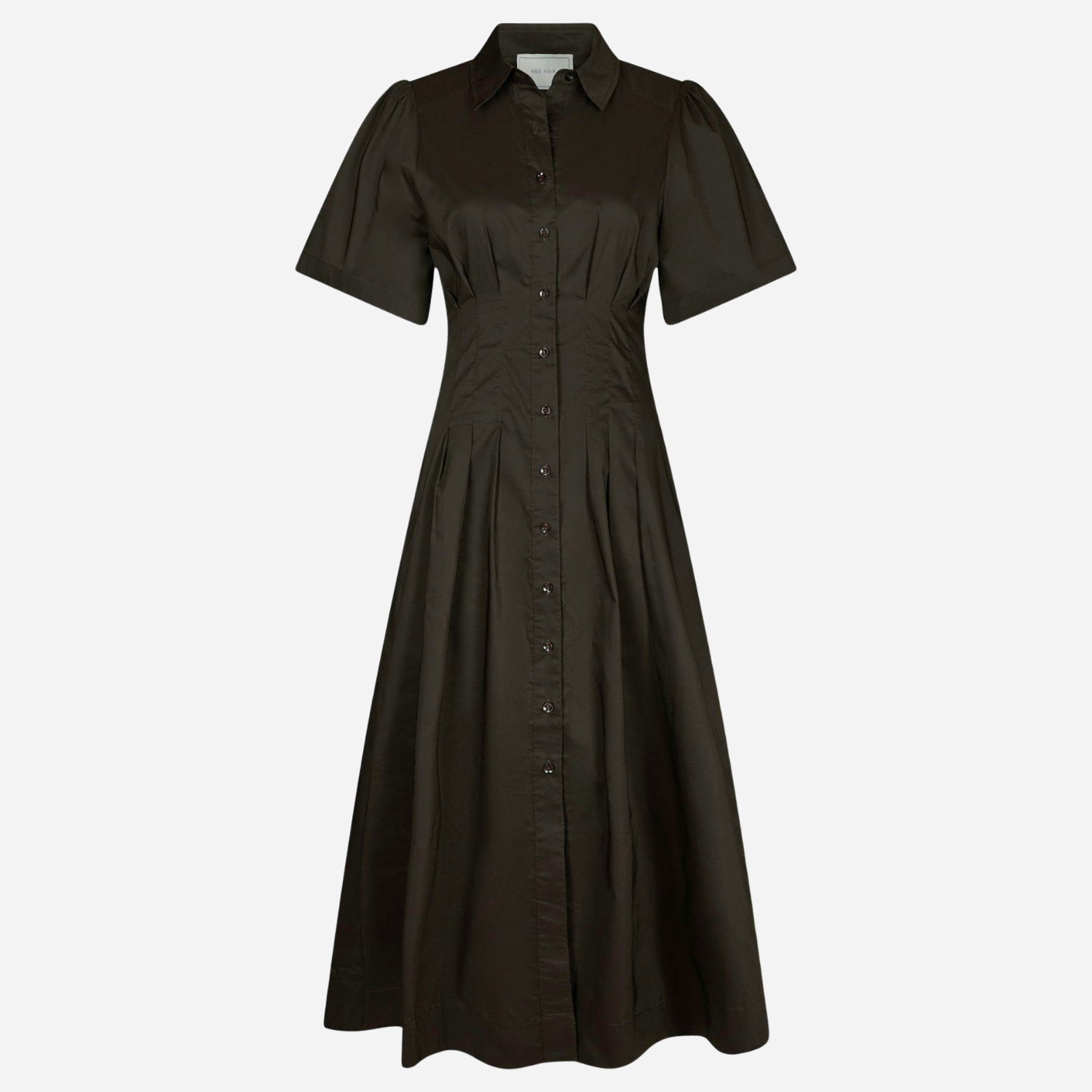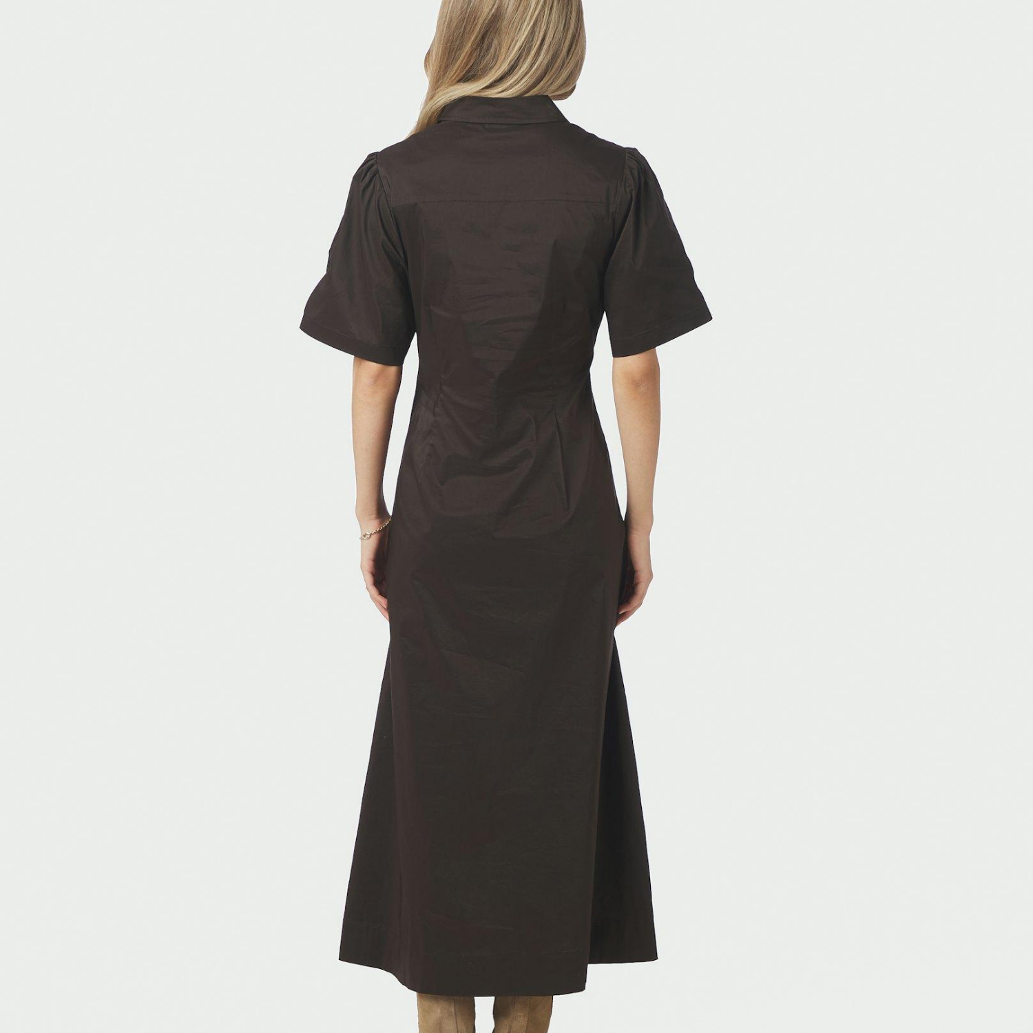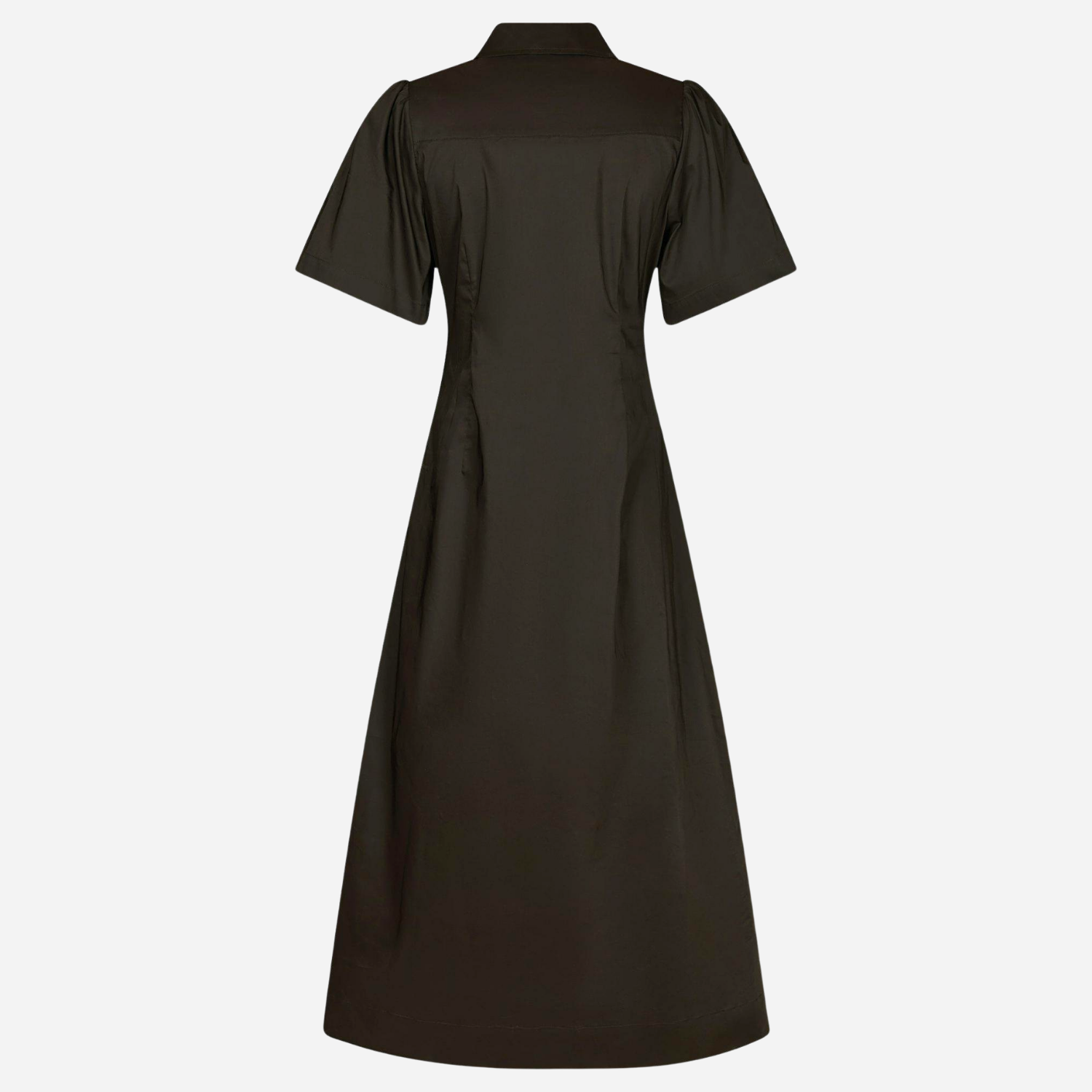 Brun poplin kjole fra Neo Noir med korte ærmer.