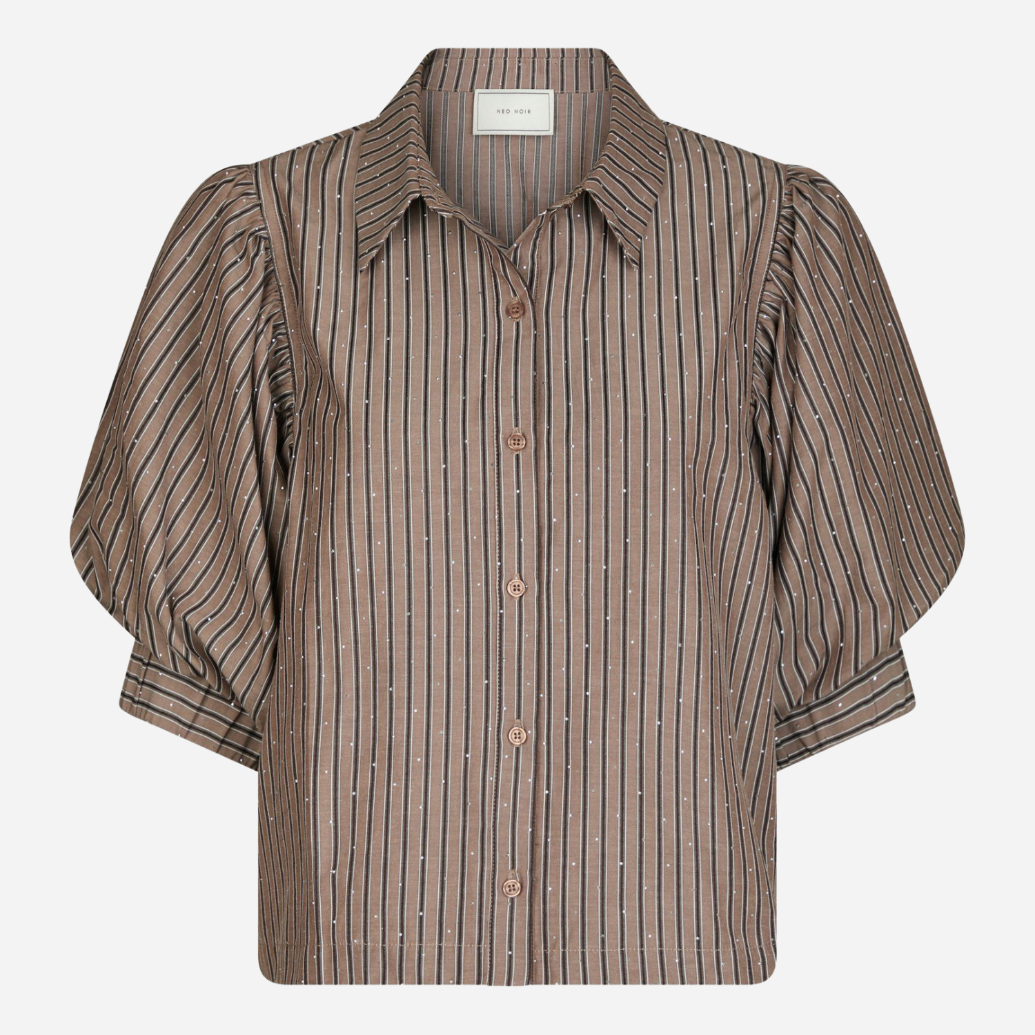 Neo Noir Etta Soft Stripe Stone Shirt Brown