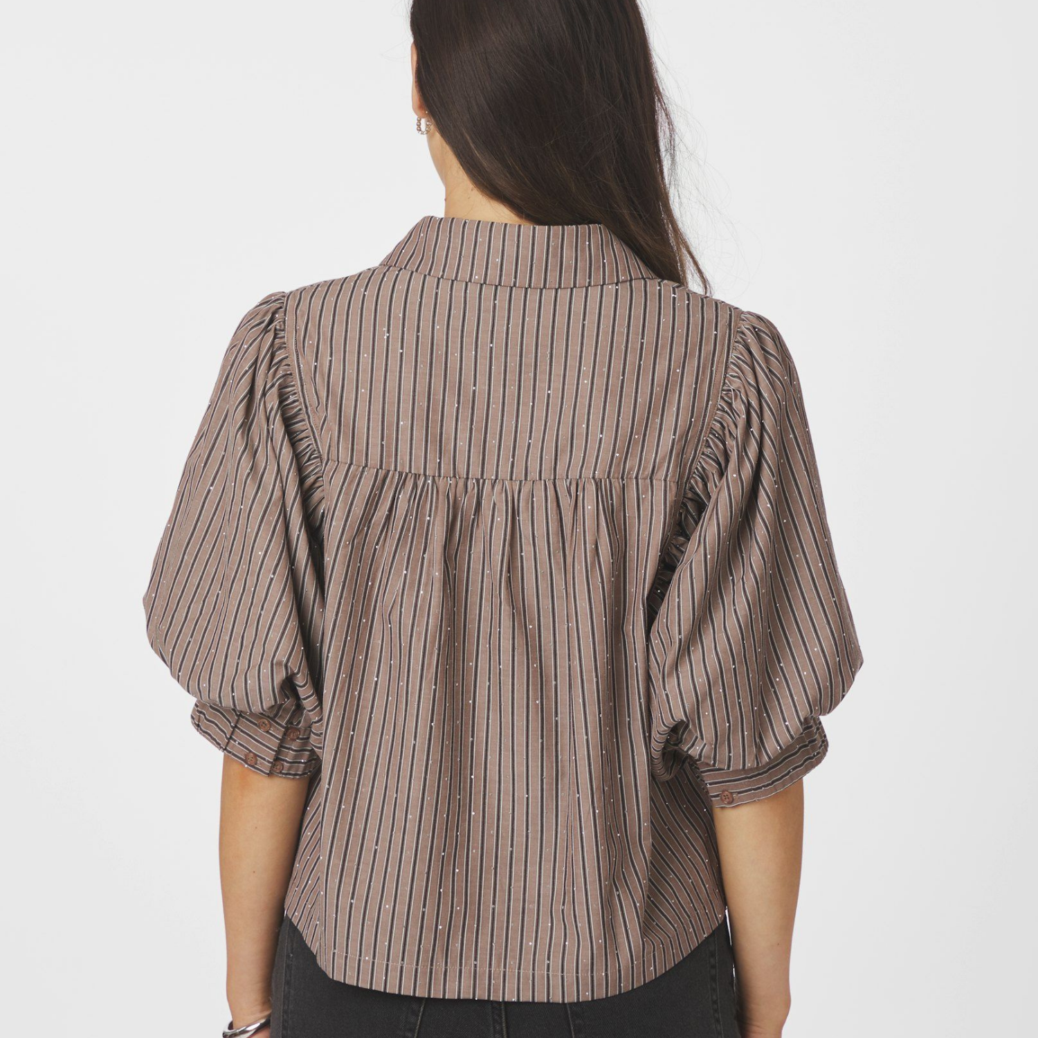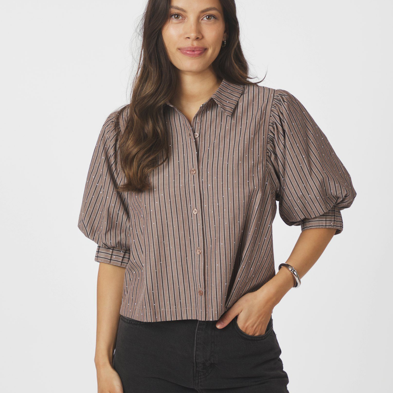 Stribet skjorte fra Neo Noir i brun med flot sten påsætning.