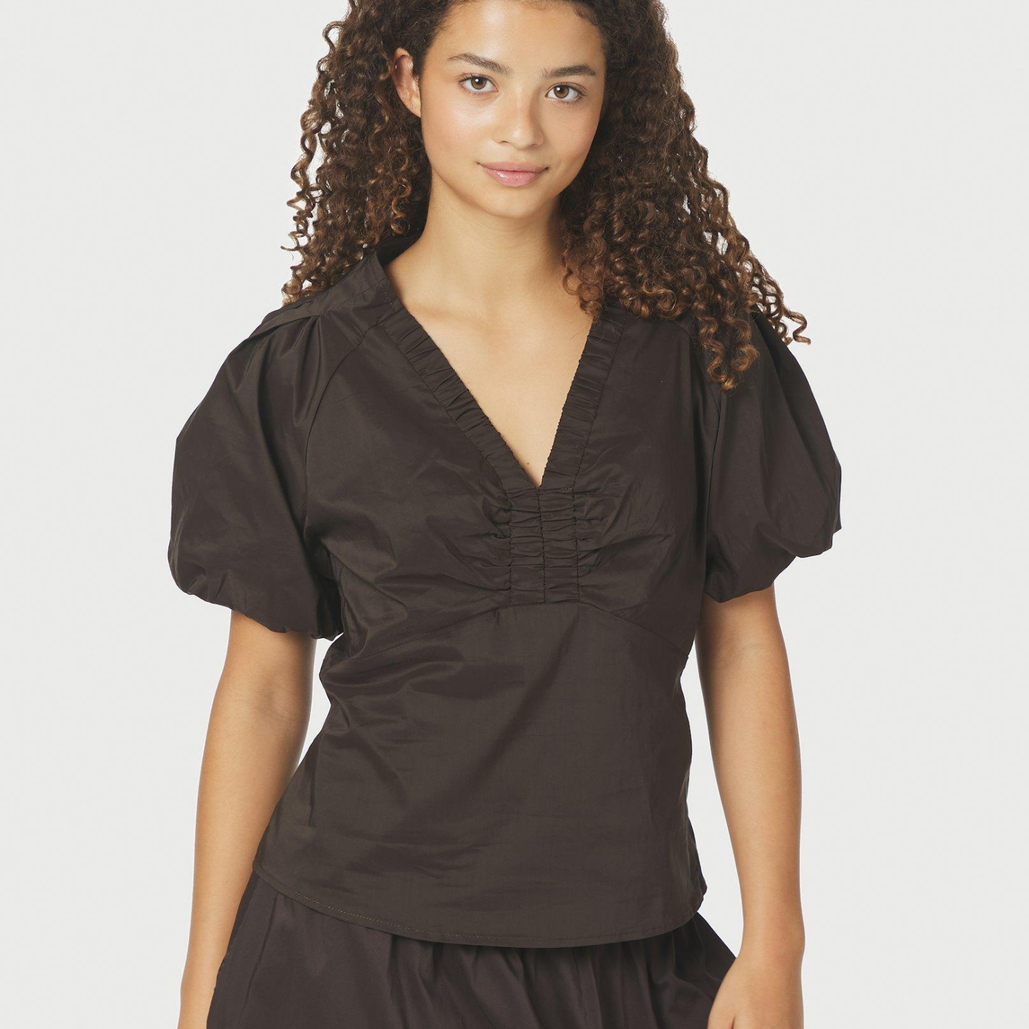 Neo Noir Irina Poplin Blouse Chocolate Brown