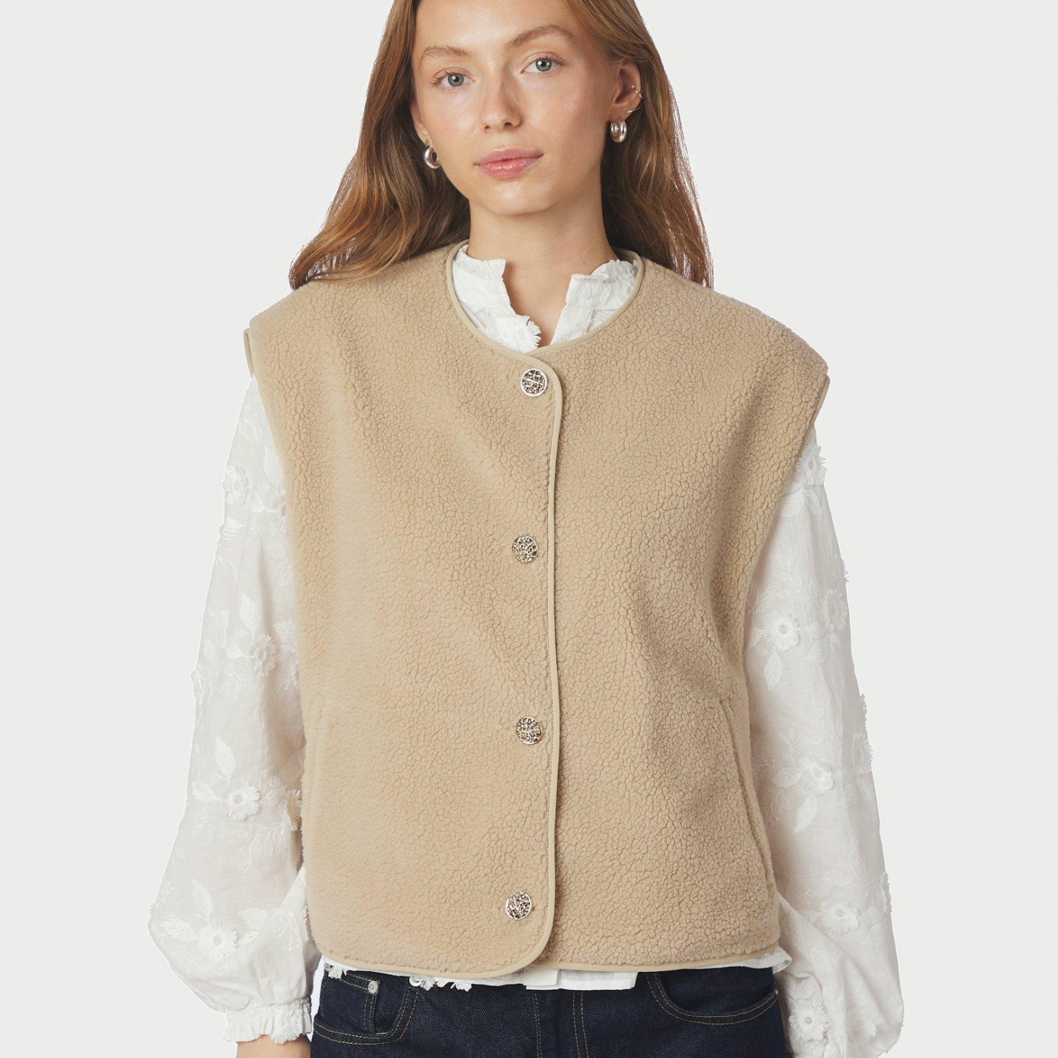 Teddy vest fra Neo Noir i sandfarvet.