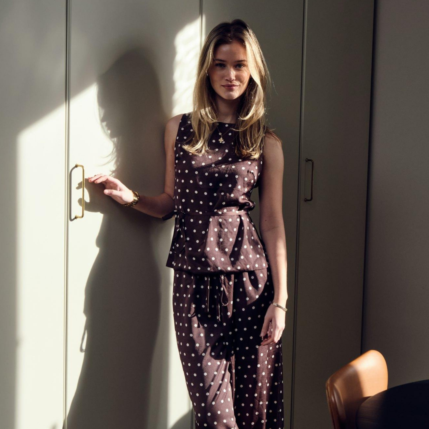 Fin prikket satin top fra Neo Noir i brun.