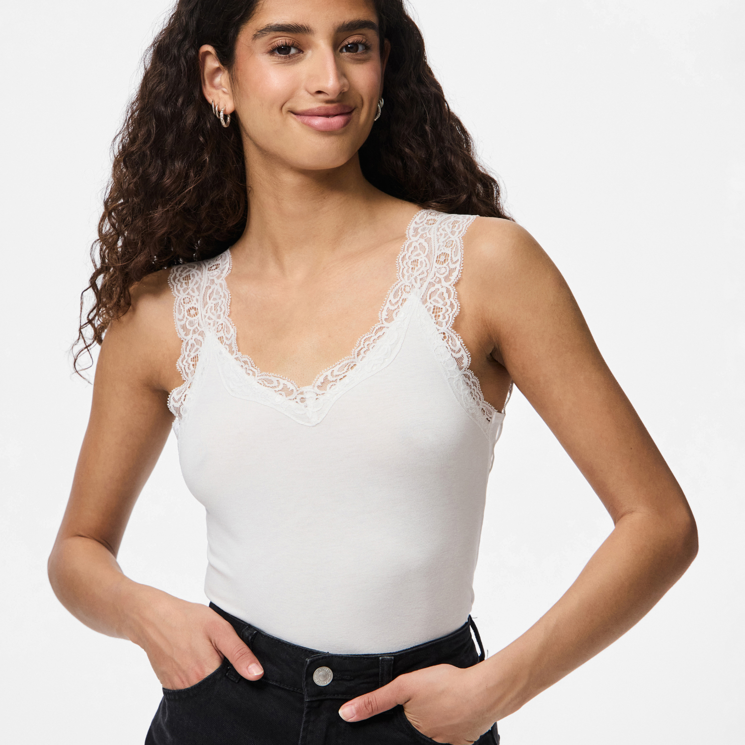 Viskose basis top med blonde stropper fra Pieces i hvid.