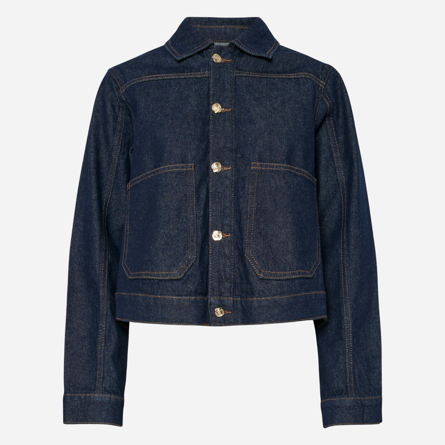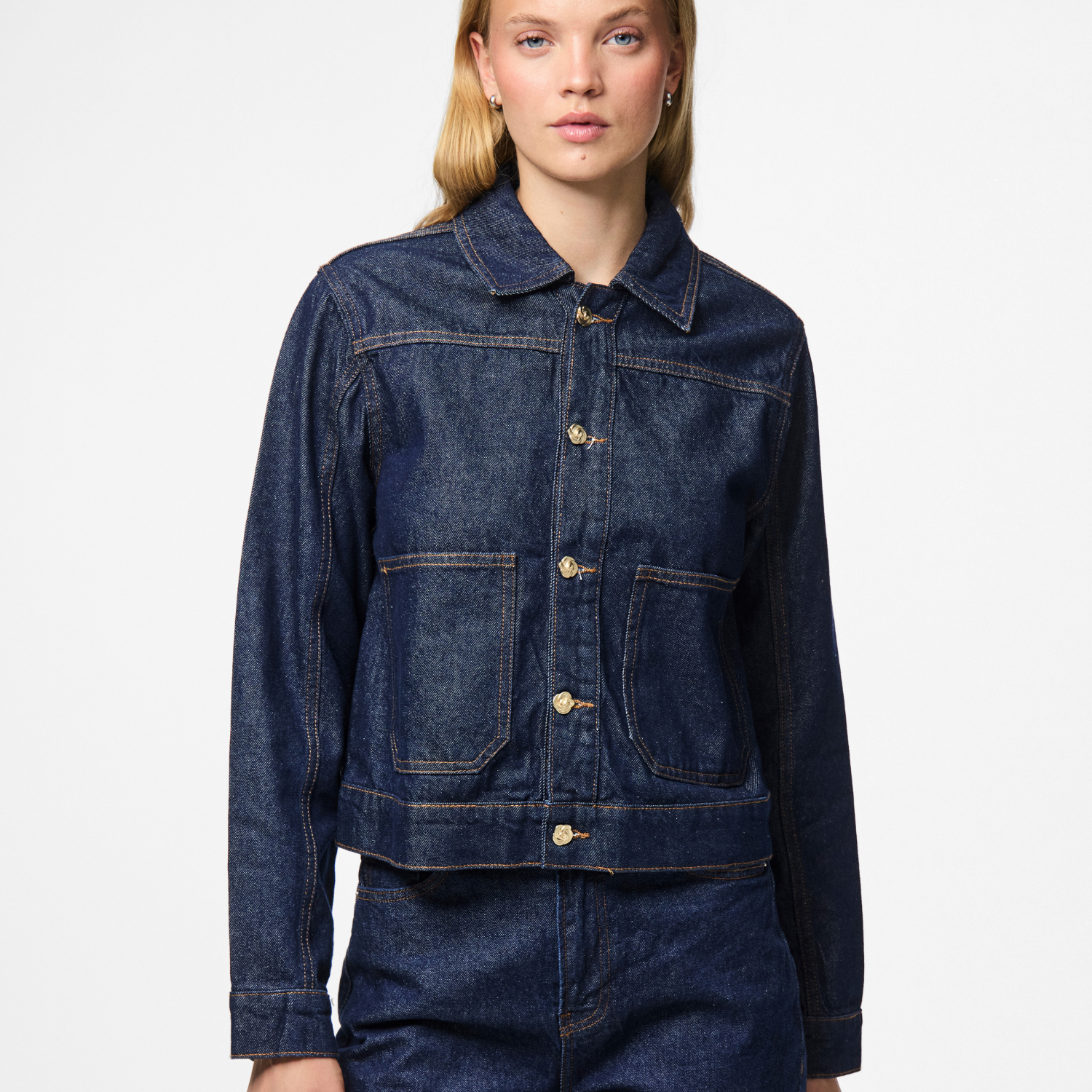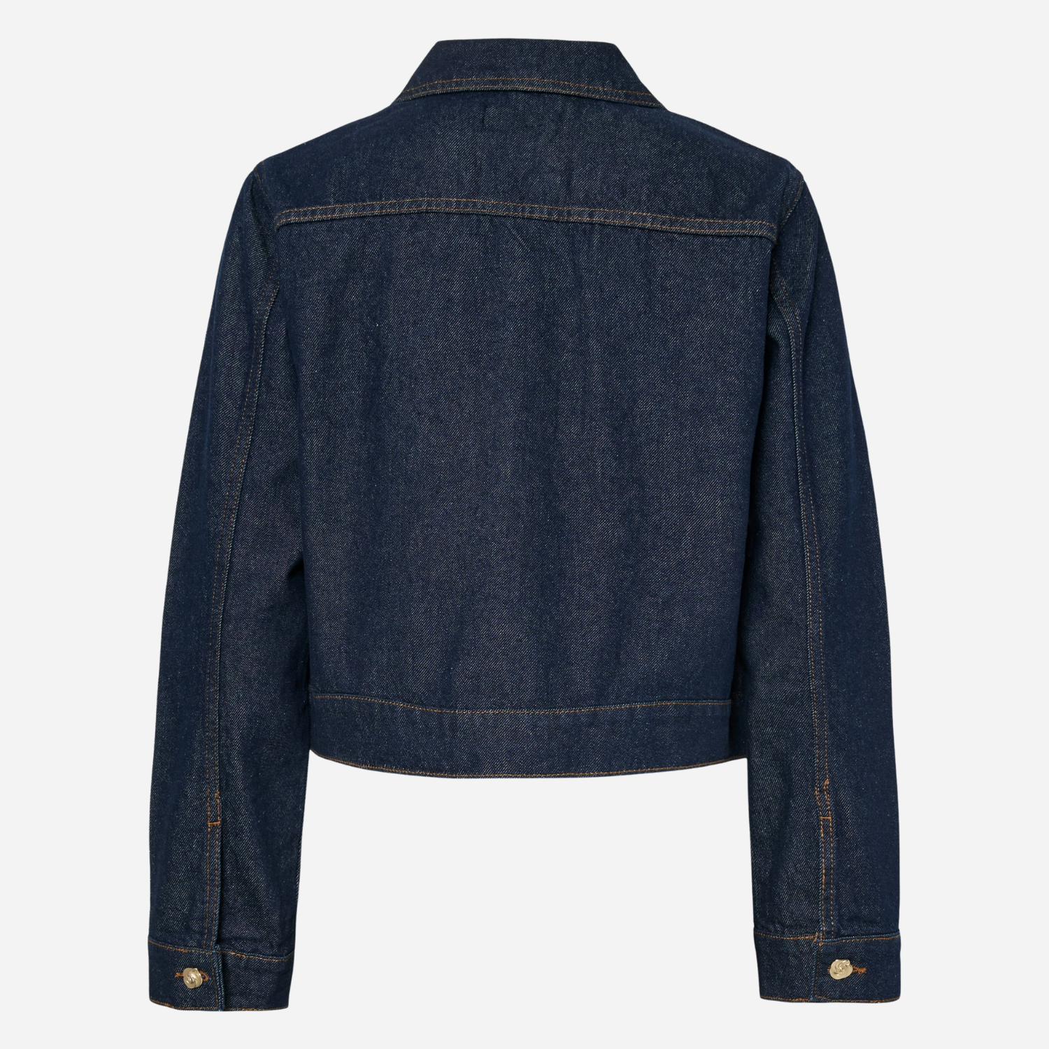 Mørkeblå denim jakke fra Pieces uden stretch.