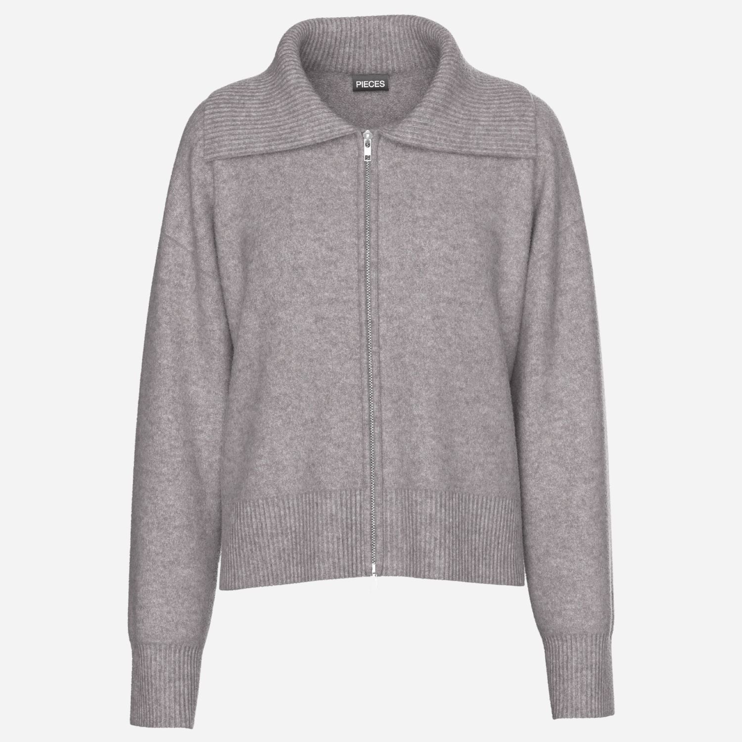 Pieces PCMalou LS Zip Knit Cardigan Noos Medium Grey Melange