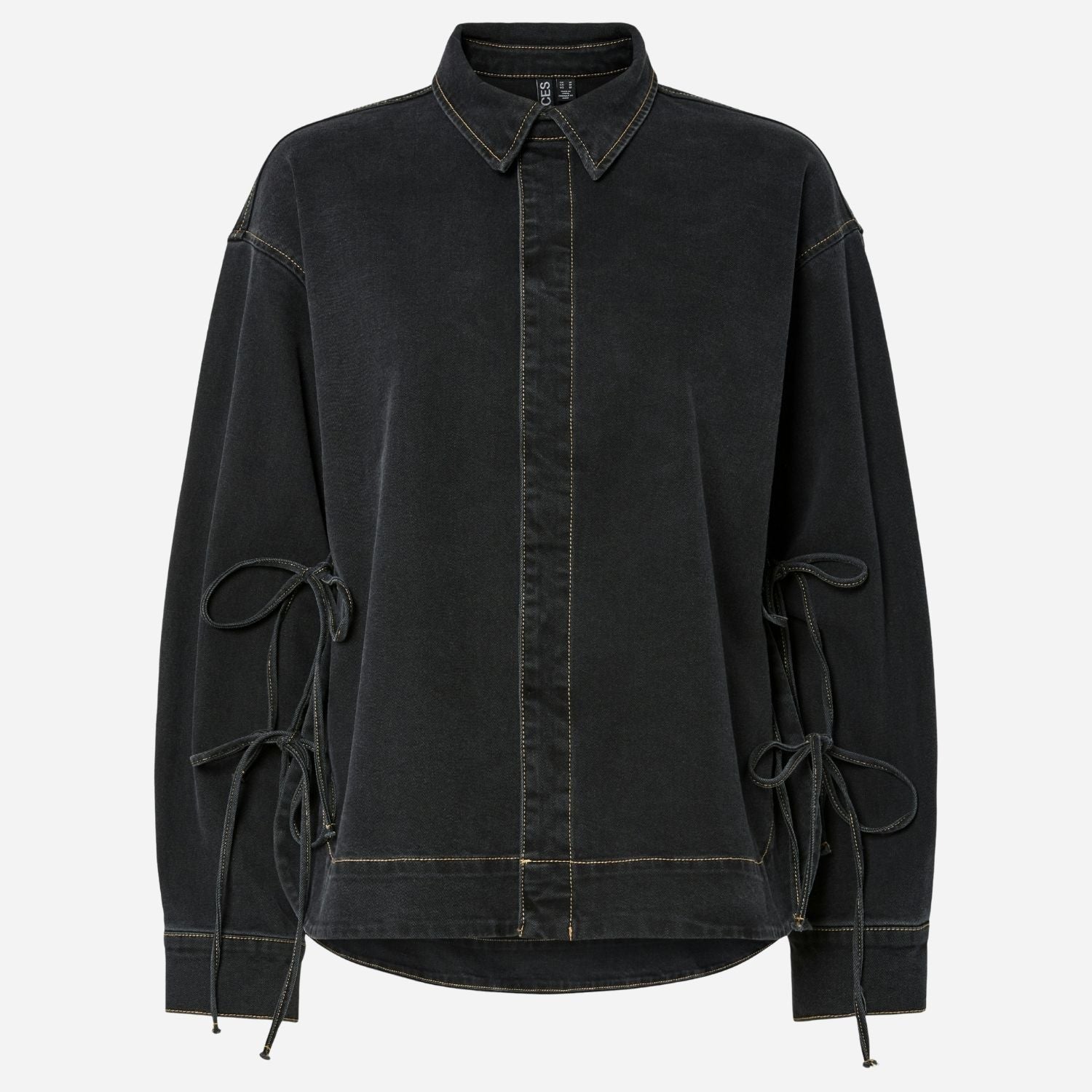 Pieces PCMathea LS Curved Denim Shirt Washed Black