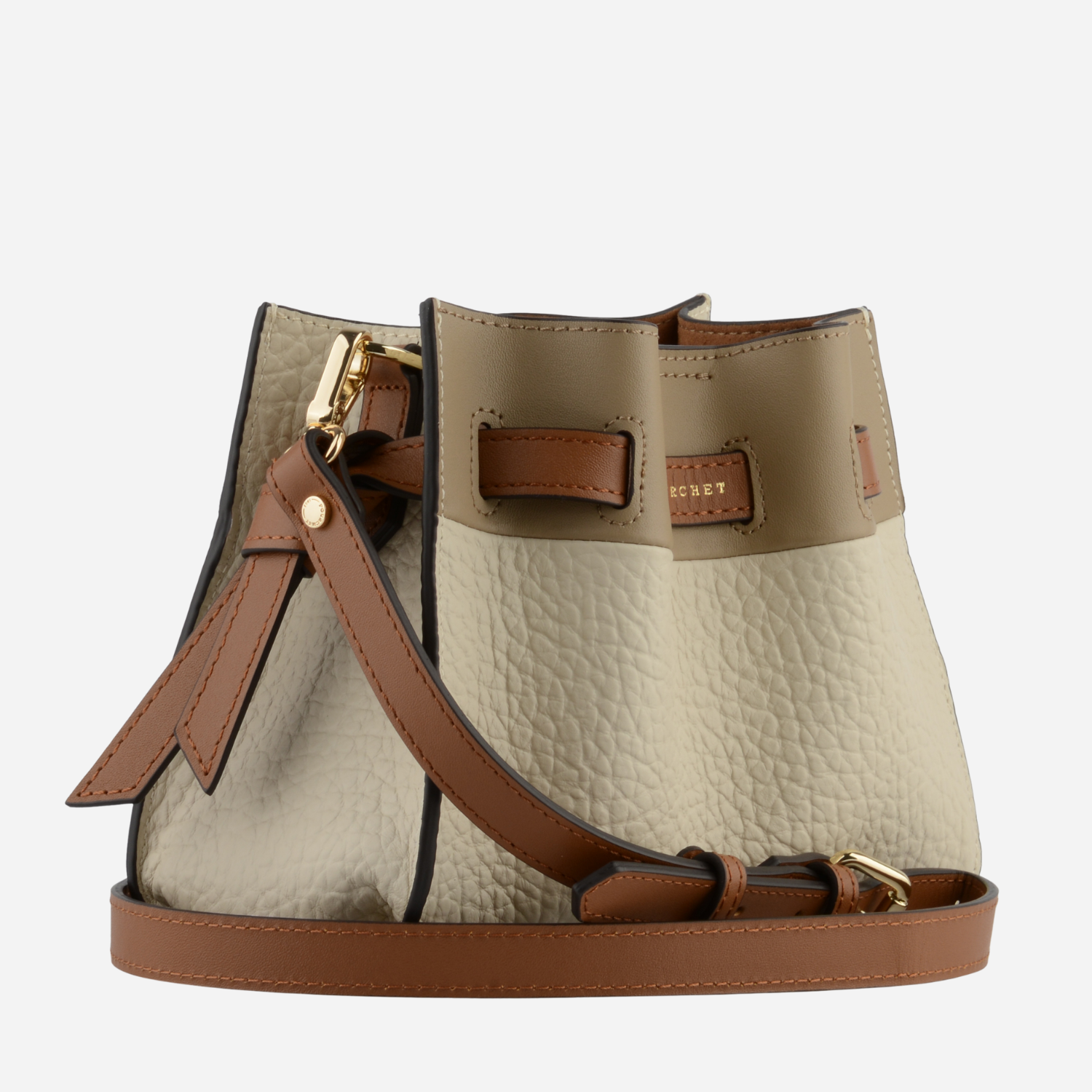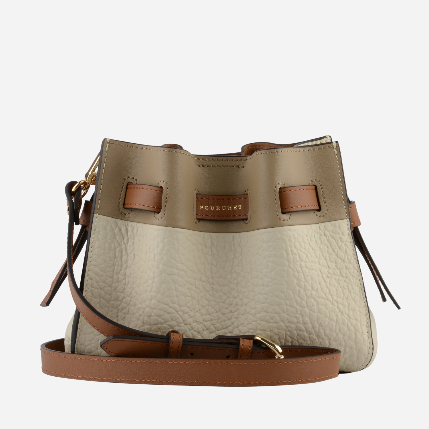 Lille taske fra Pourchet Paris i flot mix af sandfarvet..